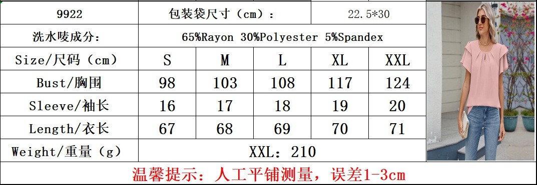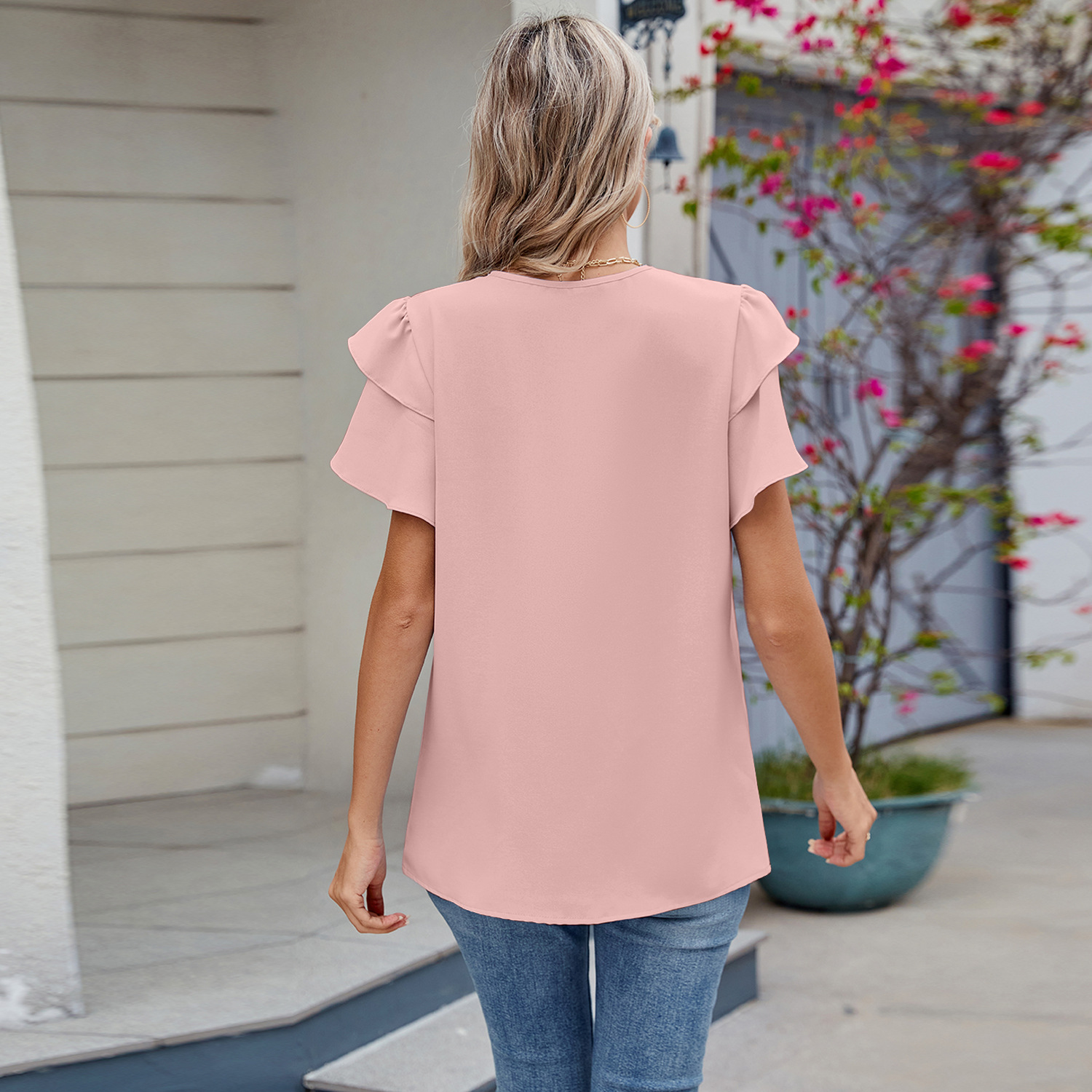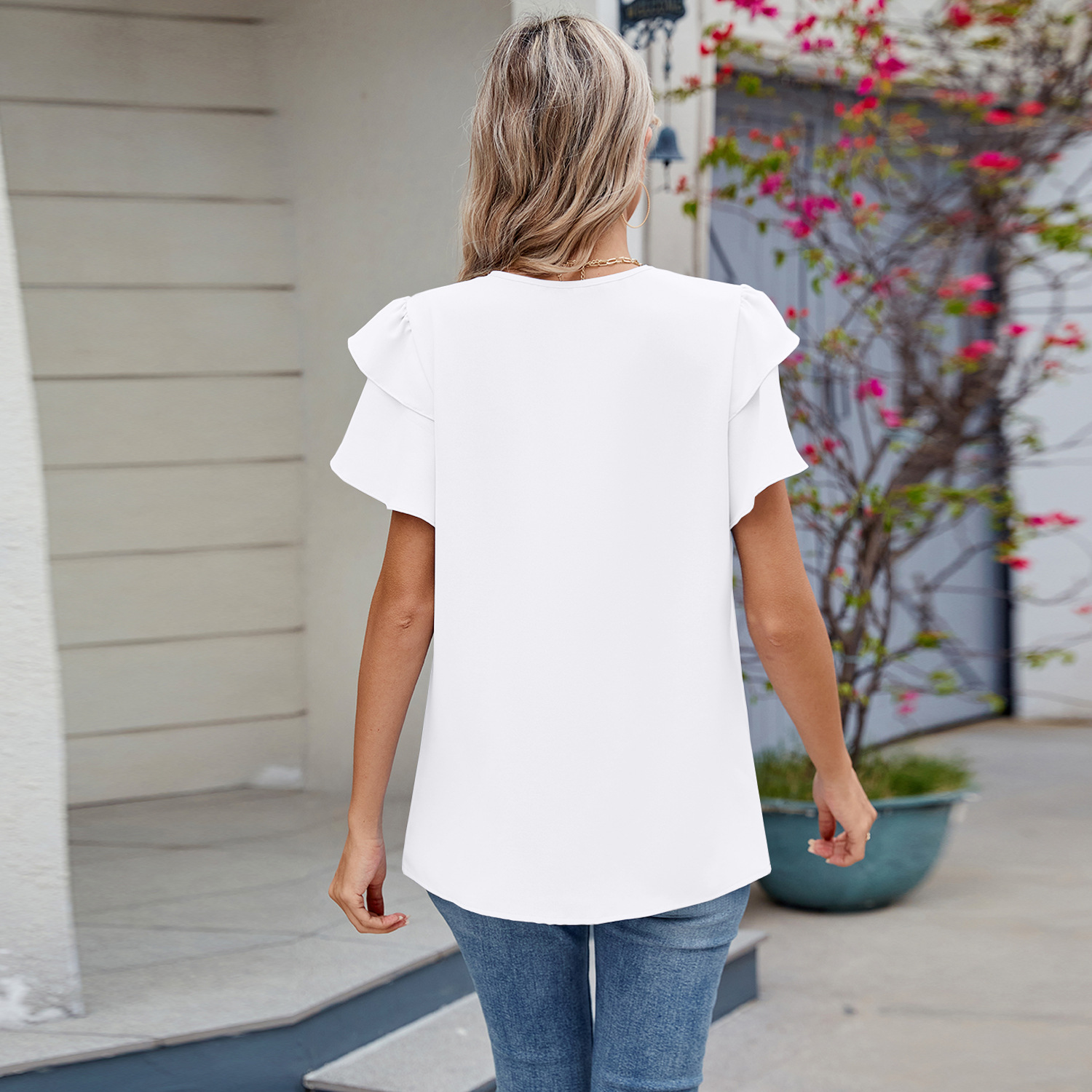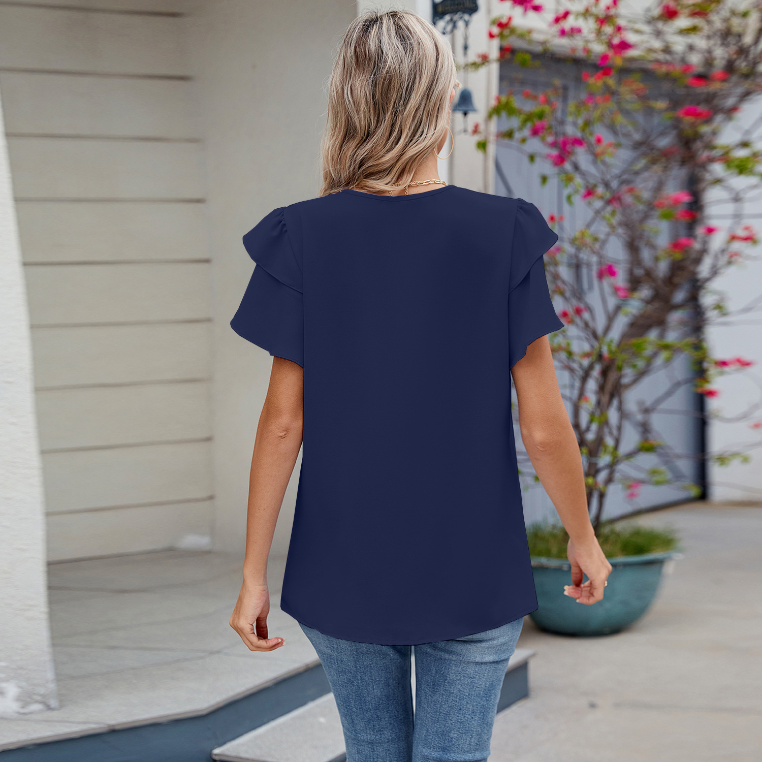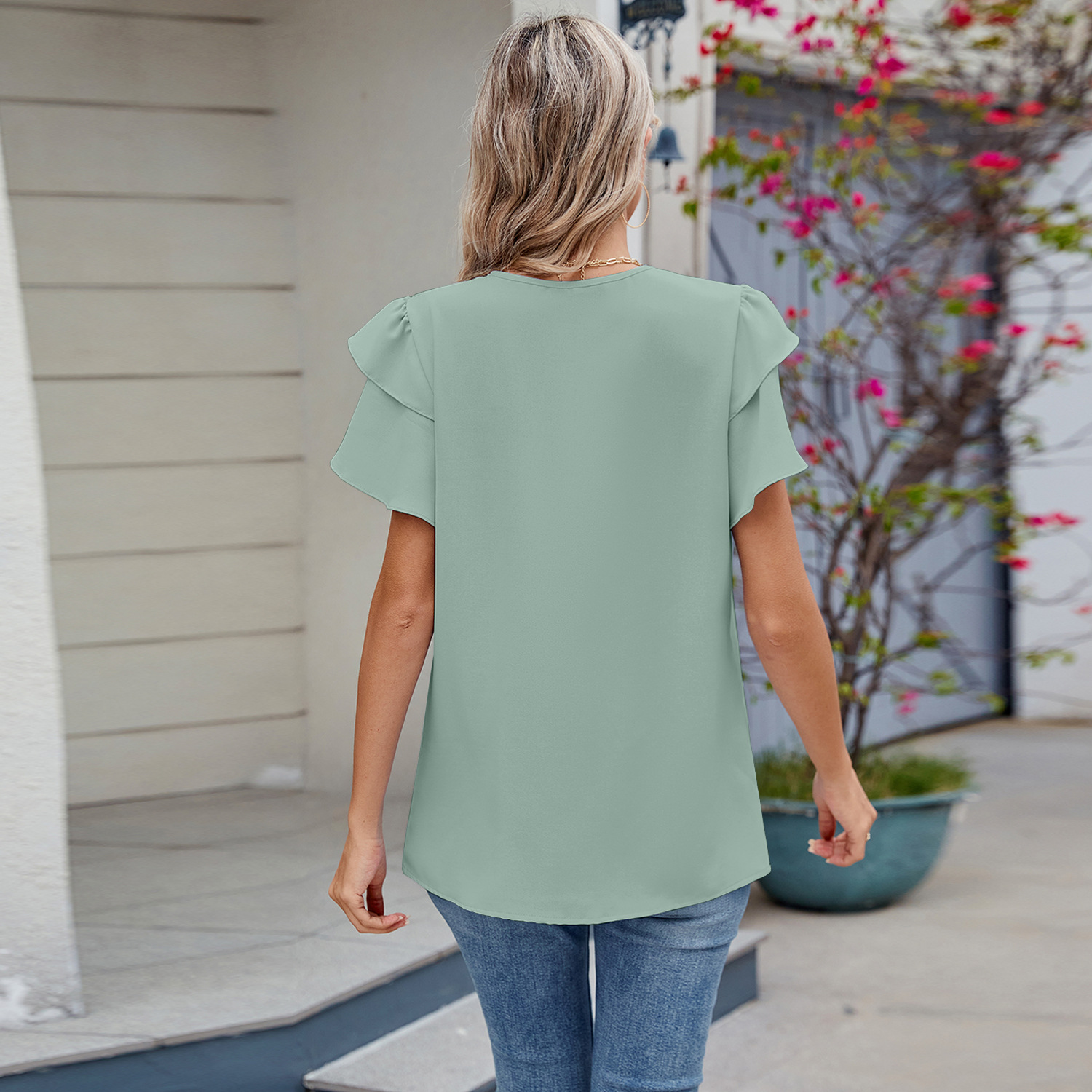 유럽과 미국의 국경 간 여성 2025 아마존 봄과 여름 새로운 라운드 넥 플라잉 슬리브 느슨한 쉬폰 셔츠 최고의 여성 재고스토어 가기