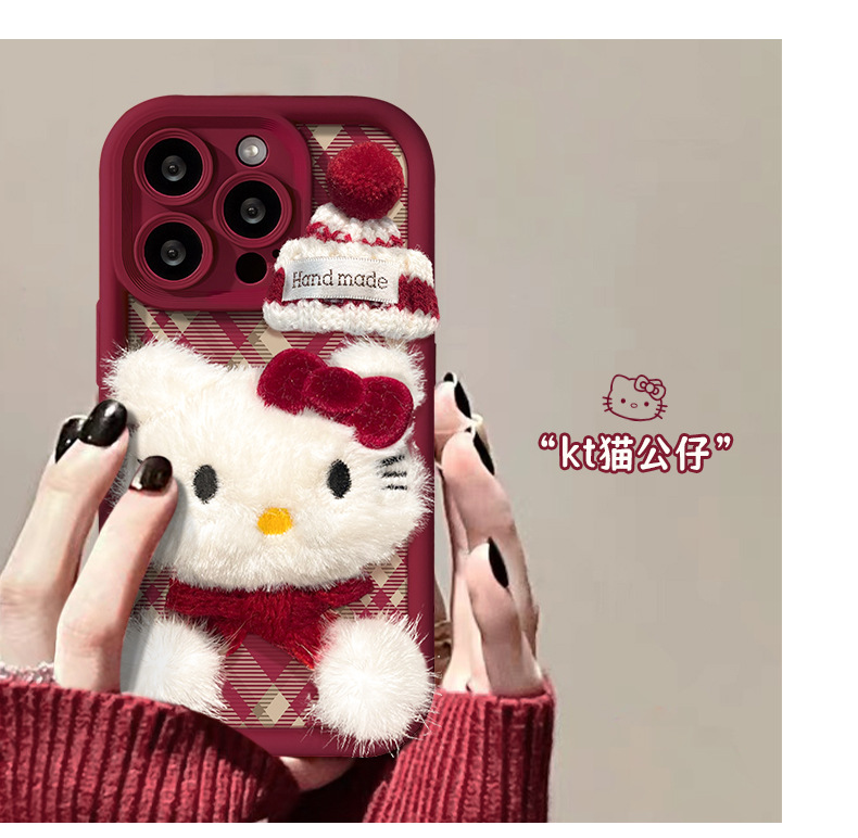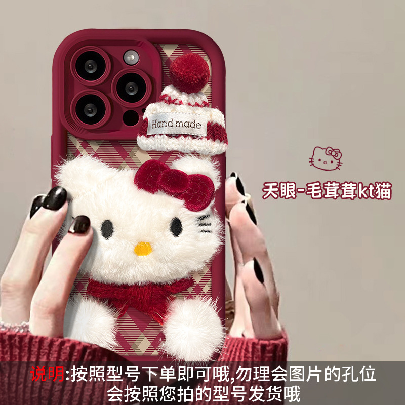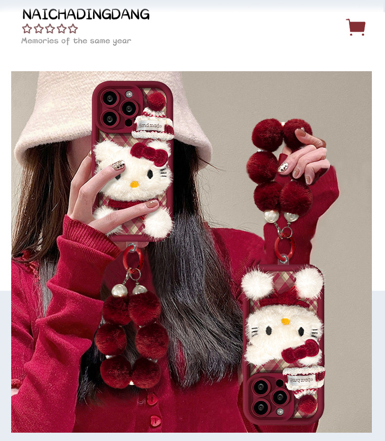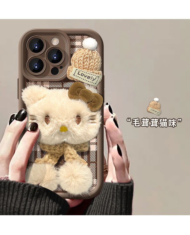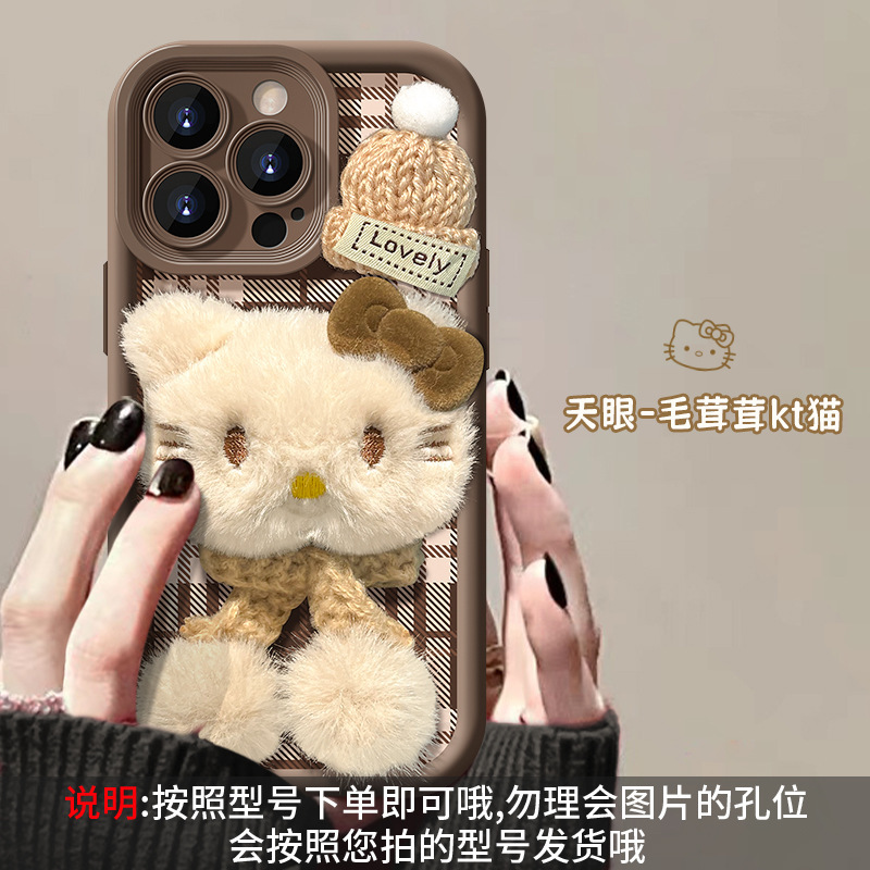 애플 16 양가죽 휴대폰 케이스에 적합한 플러시 고양이 인형 팔찌, 가을 겨울 15pro 무광 실리콘 13/17스토어 가기