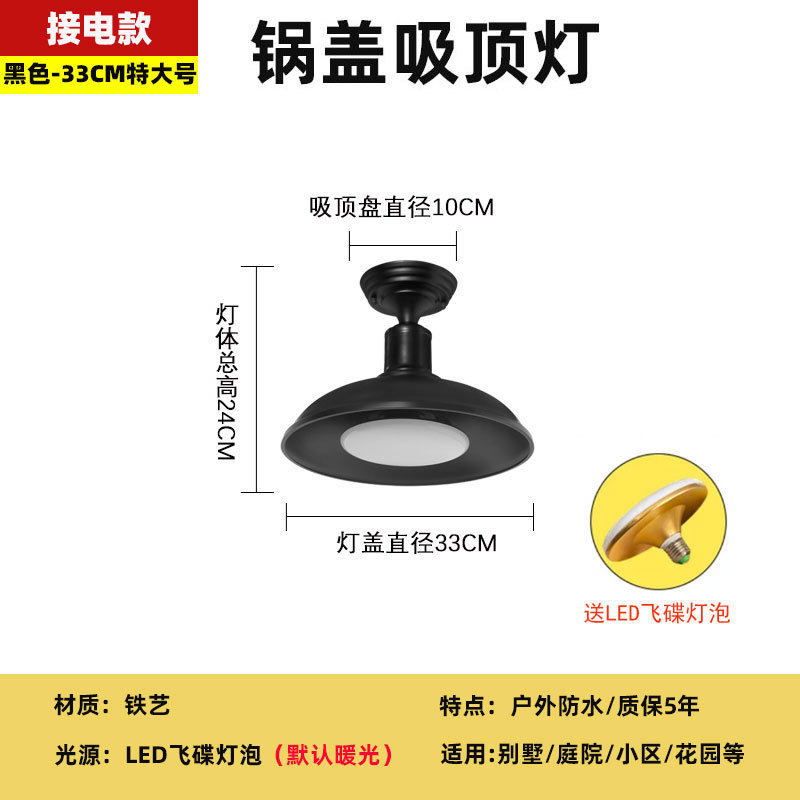 • 대형 냄비 뚜껑 천장 조명 - 검정색 무료 15W 비행 접시