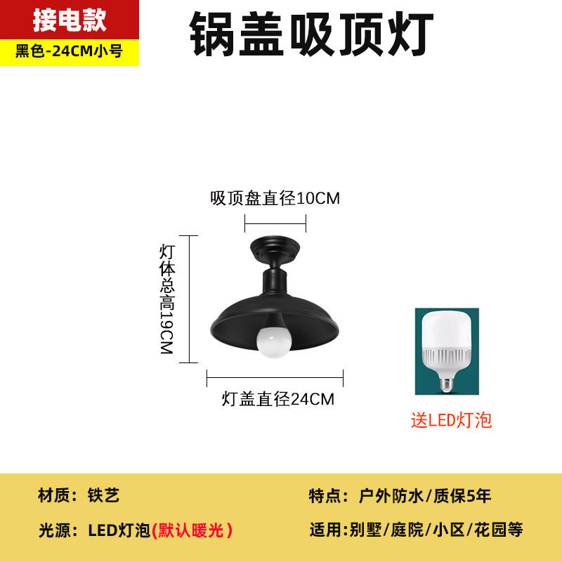 • 작은 냄비 뚜껑 천장 조명 - 검정색 무료 15W LED 전구