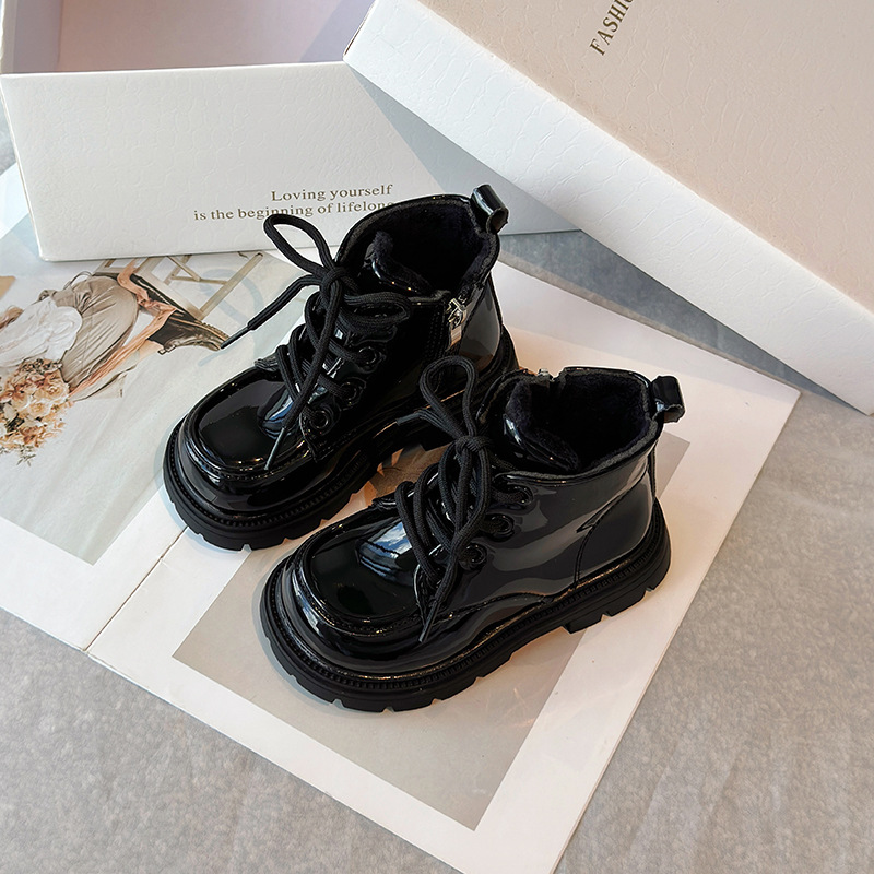 여자 마틴 부츠 2024 겨울 새로운 어린이 기모 따뜻한 부츠 소녀 두꺼운 코튼 부츠 소년 가죽 부츠 트렌디스토어 가기