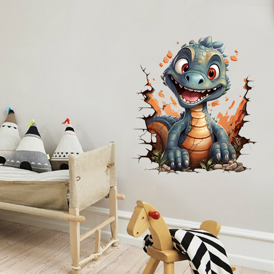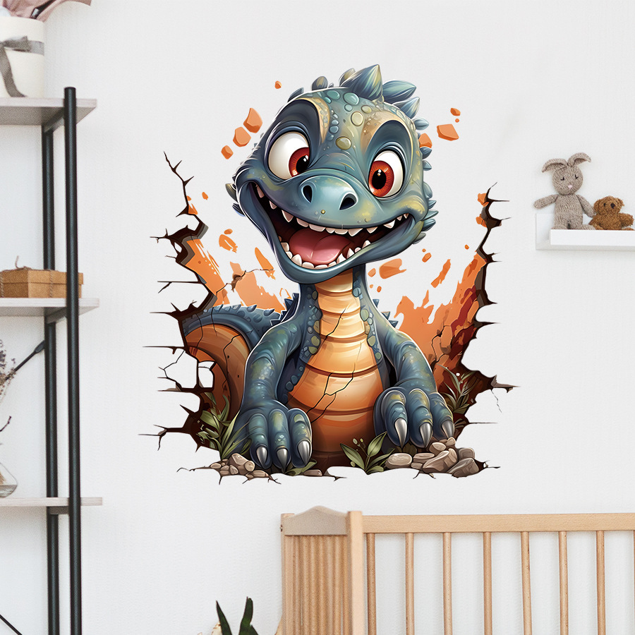 만화 3d 깨진 벽 귀여운 작은 공룡 자기 접착 벽 스티커 어린이 방 배경 벽 장식 스티커 BR3305Q스토어 가기