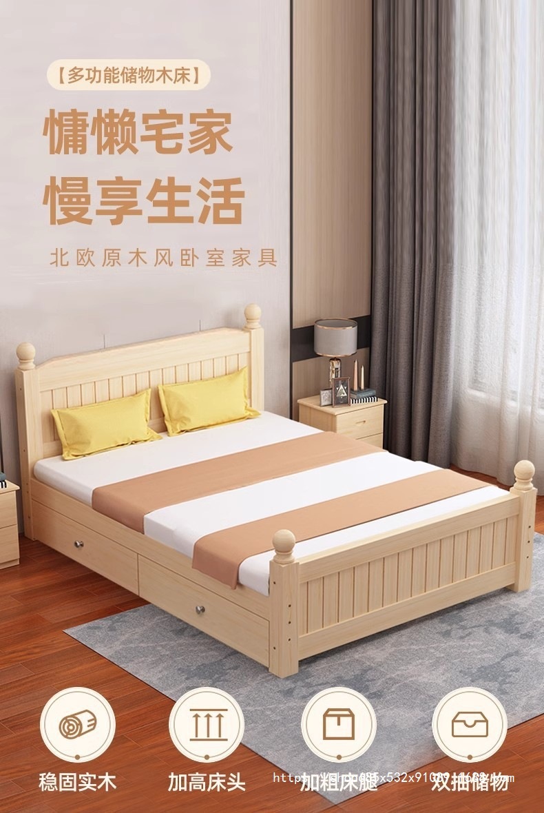 전체 단단한 나무 침대 간단한 현대 1.5 m 더블 침대 마스터 침실 임대 룸 홈 스토리지 1.2 m 싱글 침대 프레임 1m스토어 가기