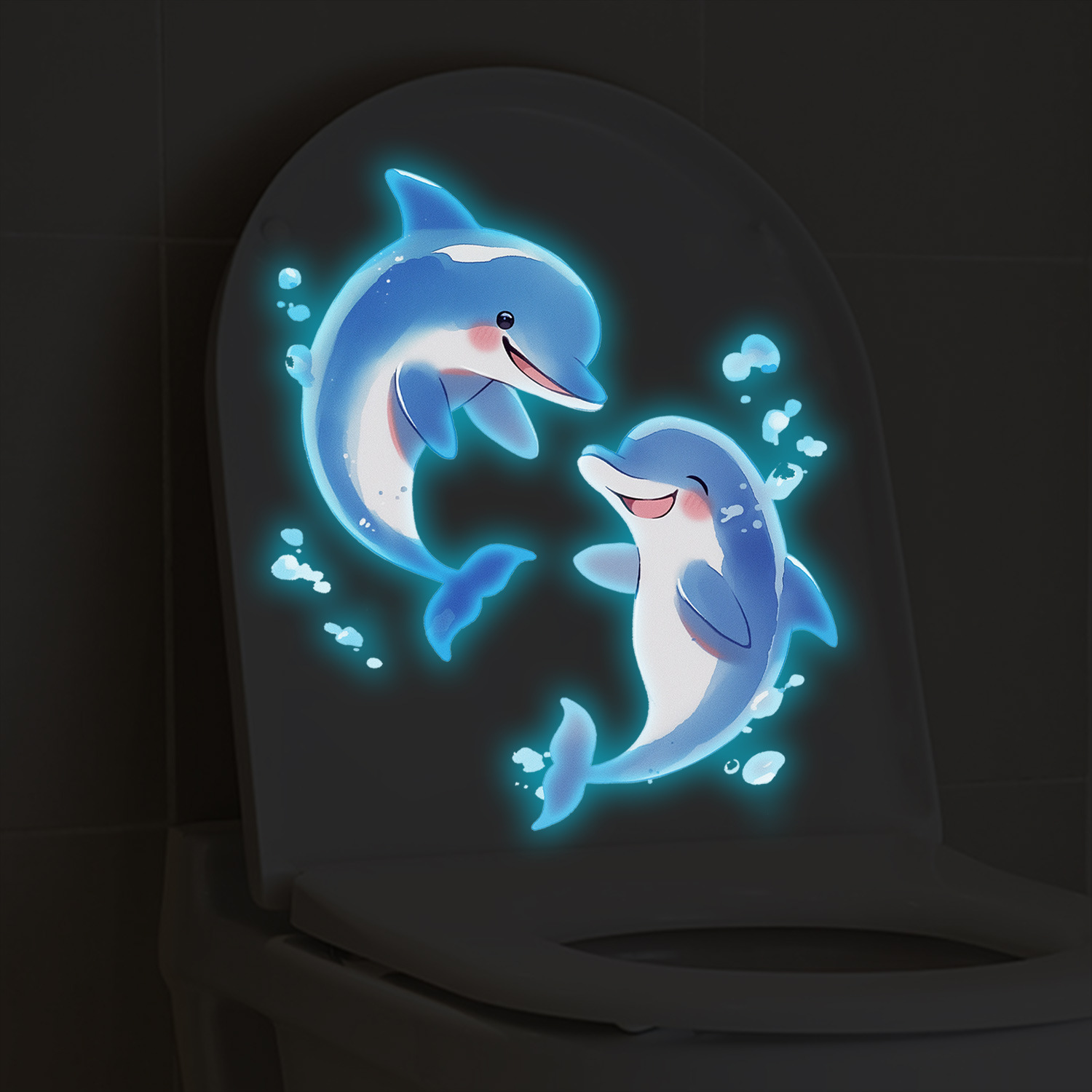 국경 간 아마존 대외 무역 귀여운 두 스마트 돌고래 빛나는 스티커 레이아웃 욕실 화장실 벽 스티커