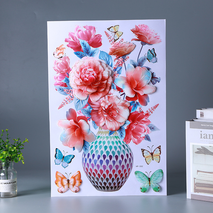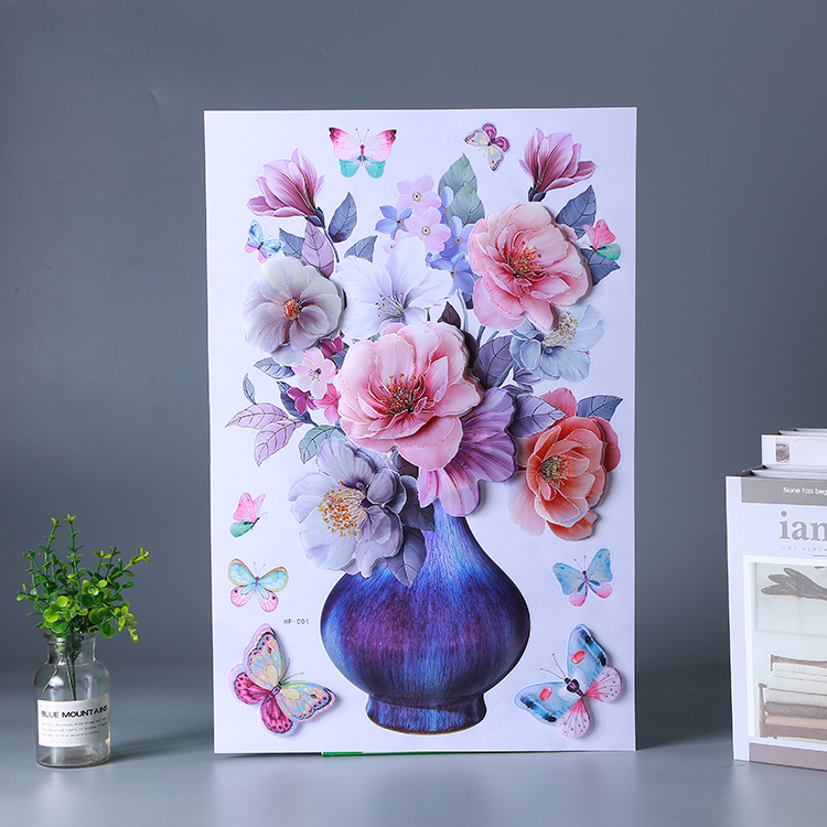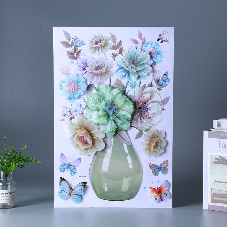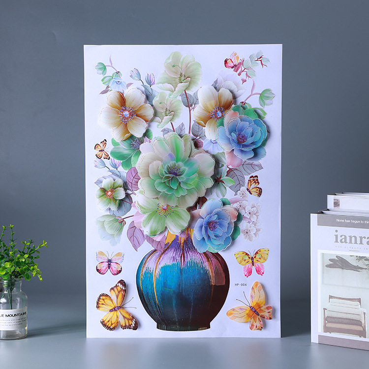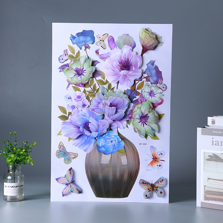 창의적인 절묘한 꽃병 3D 3 차원 레이어 별 스티커 침실 거실 장식 스티커 유리 타일 스타일 및 사양