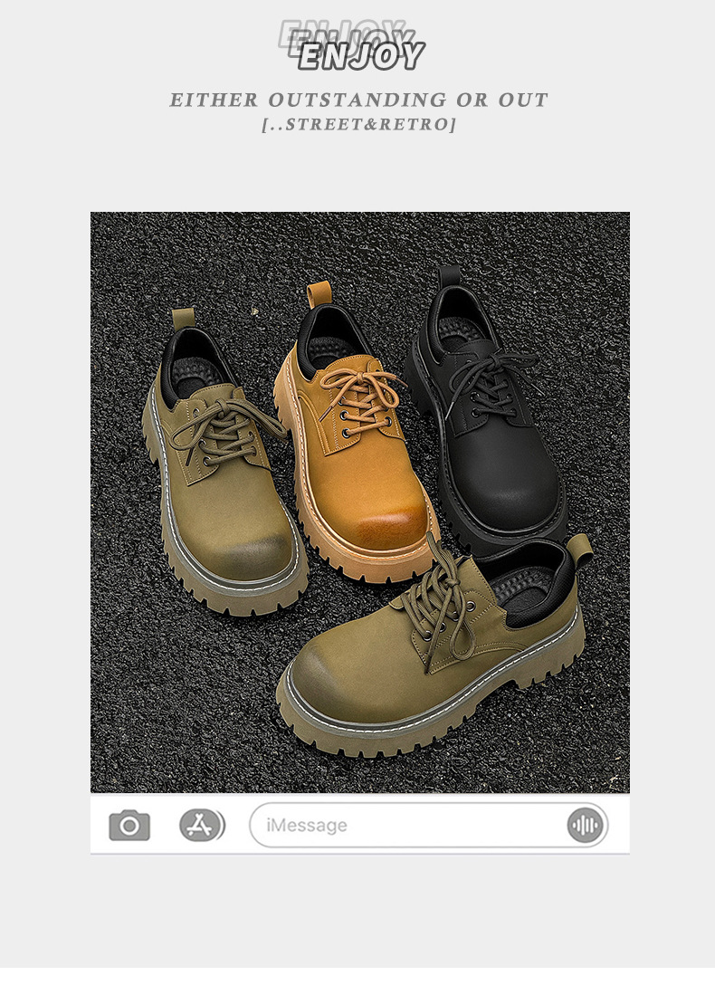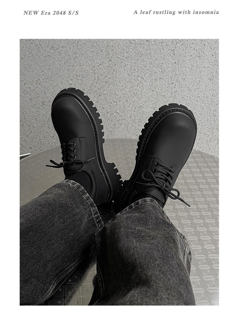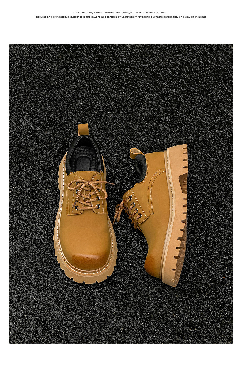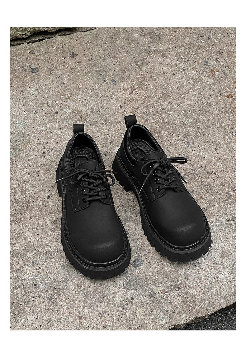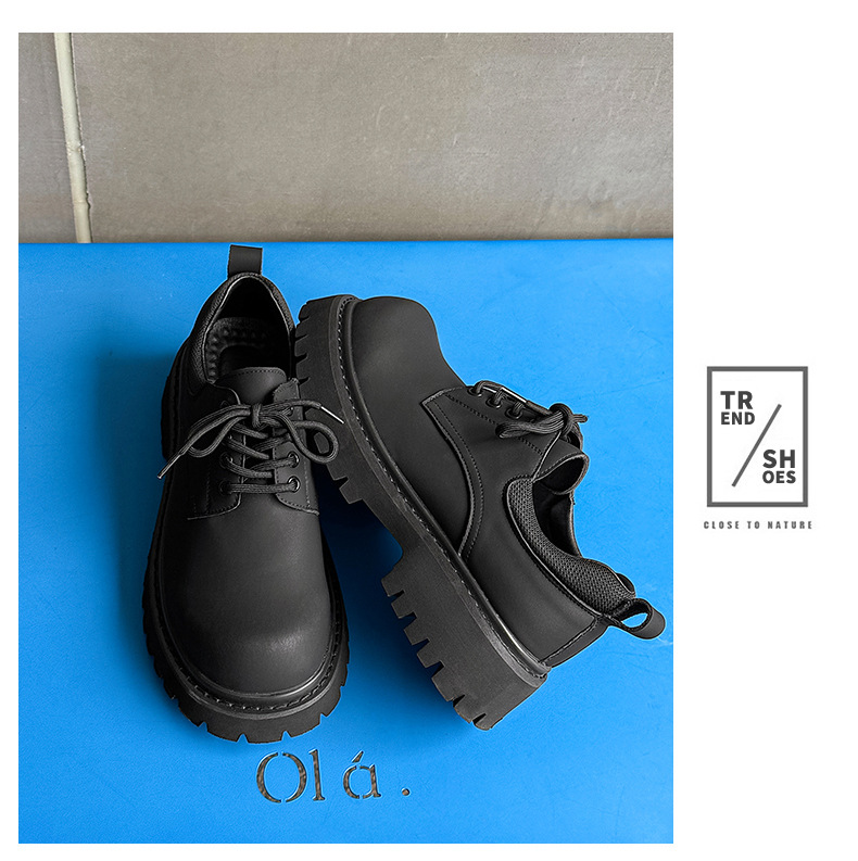 가을 2024 새로운 낮은 최고 두꺼운 단일 높이 증가 남성 신발 큰 발가락 가죽 신발 경량 간단한 스타일 트렌디 올 매치 더비 신발스토어 가기