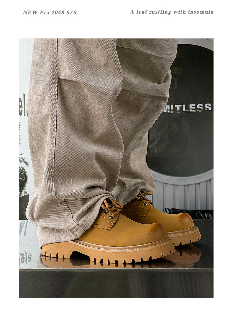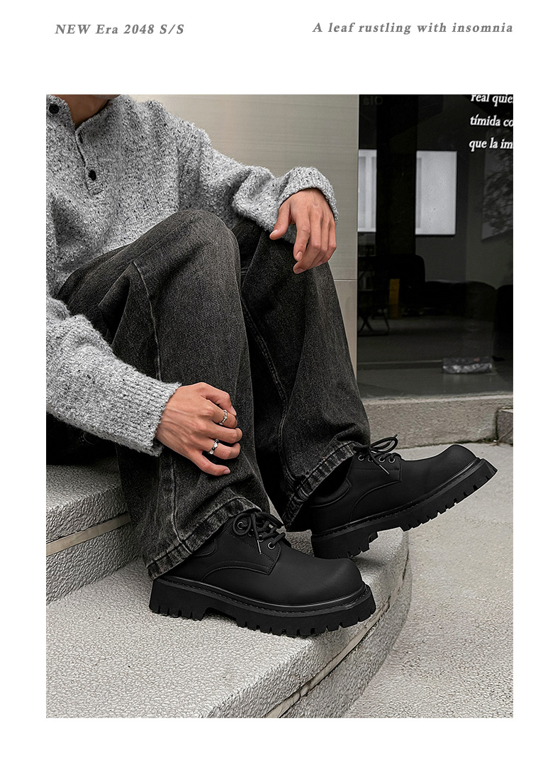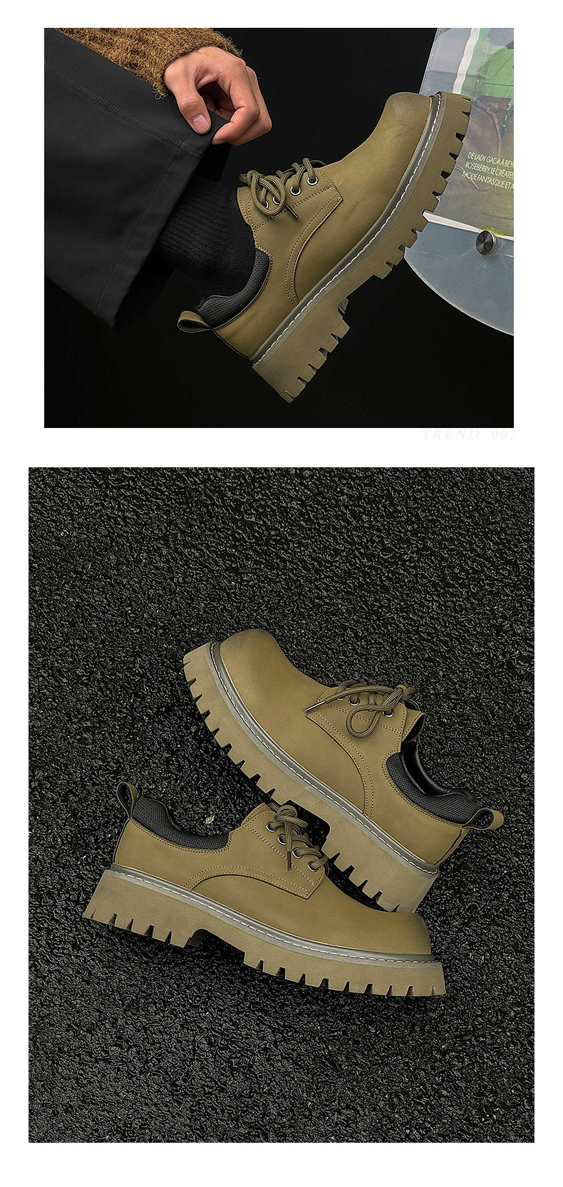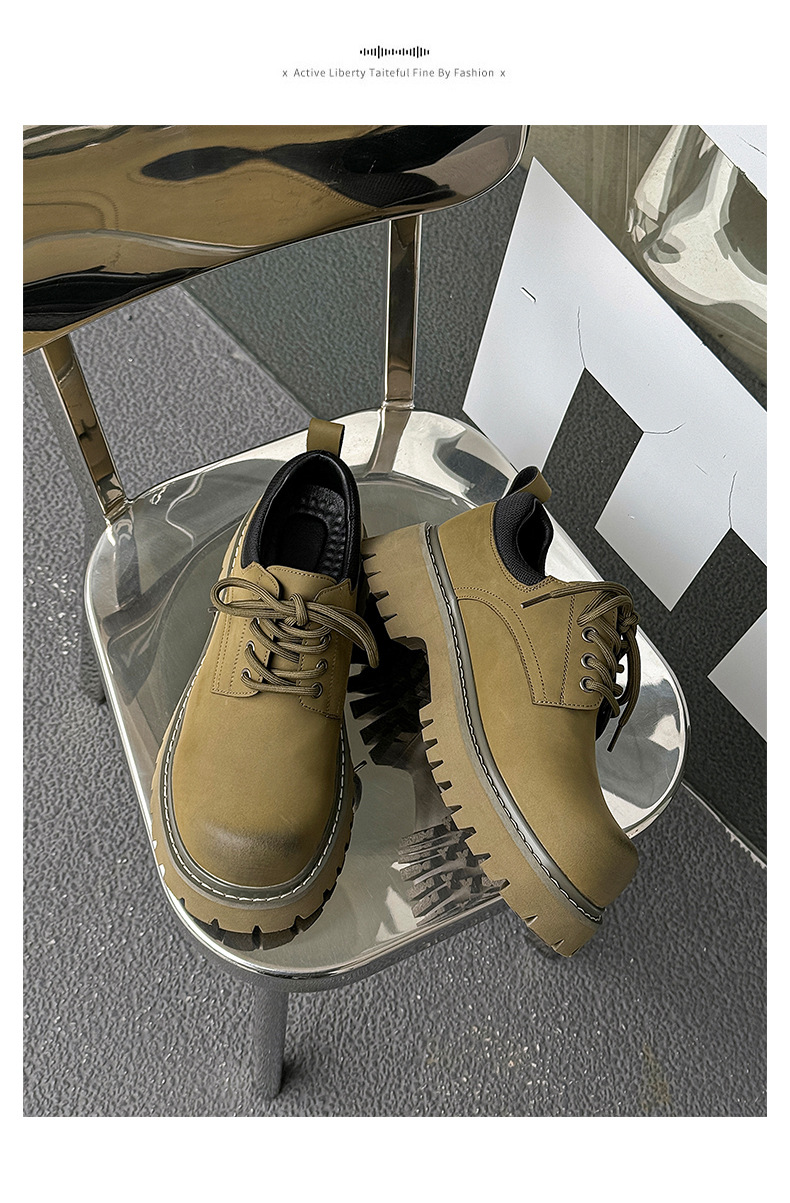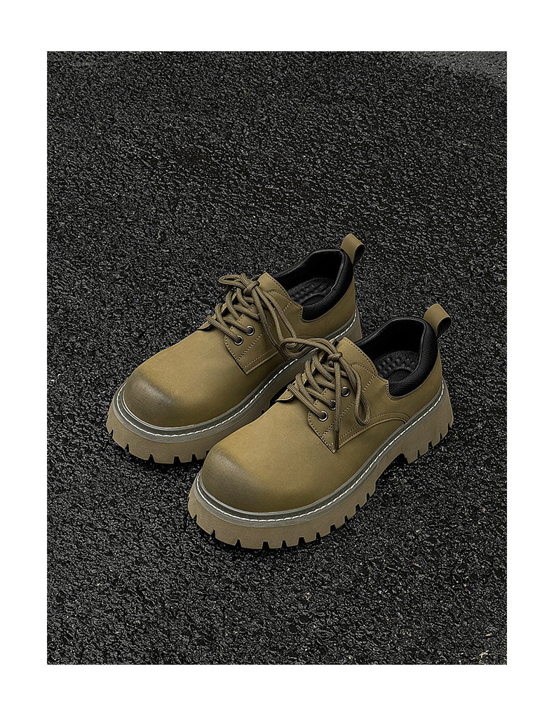 가을 2024 새로운 낮은 최고 두꺼운 단일 높이 증가 남성 신발 큰 발가락 가죽 신발 경량 간단한 스타일 트렌디 올 매치 더비 신발스토어 가기