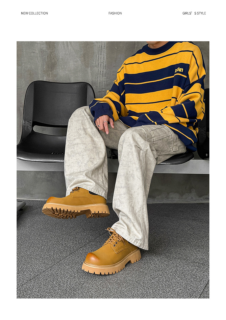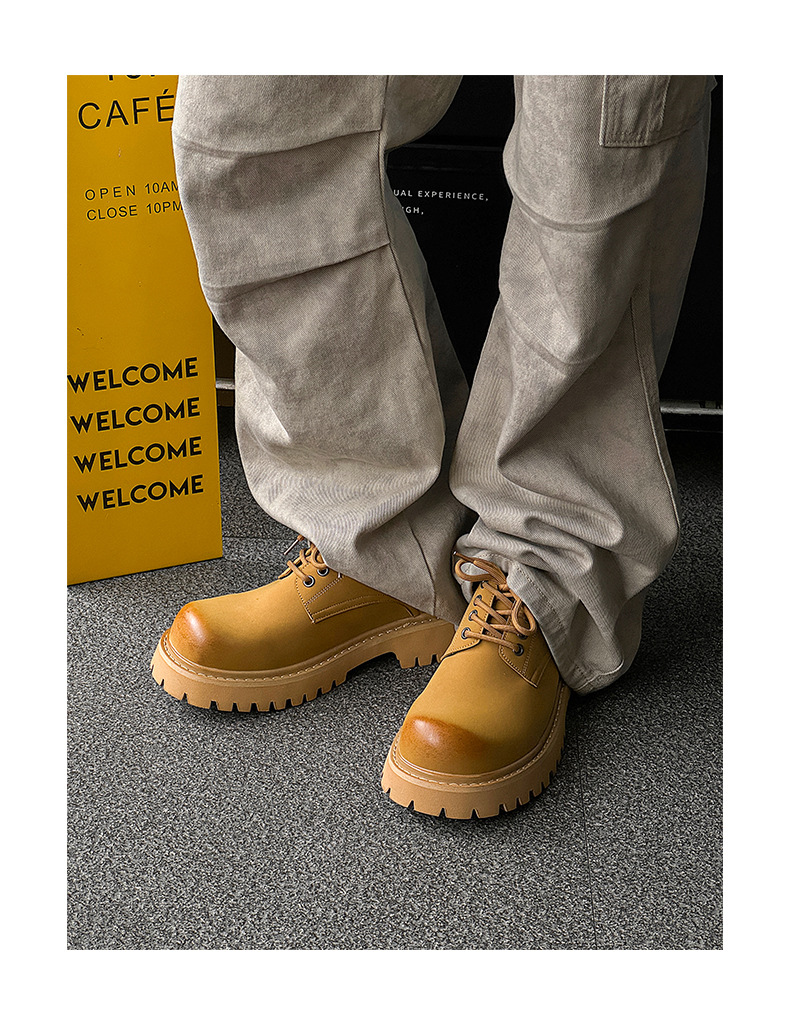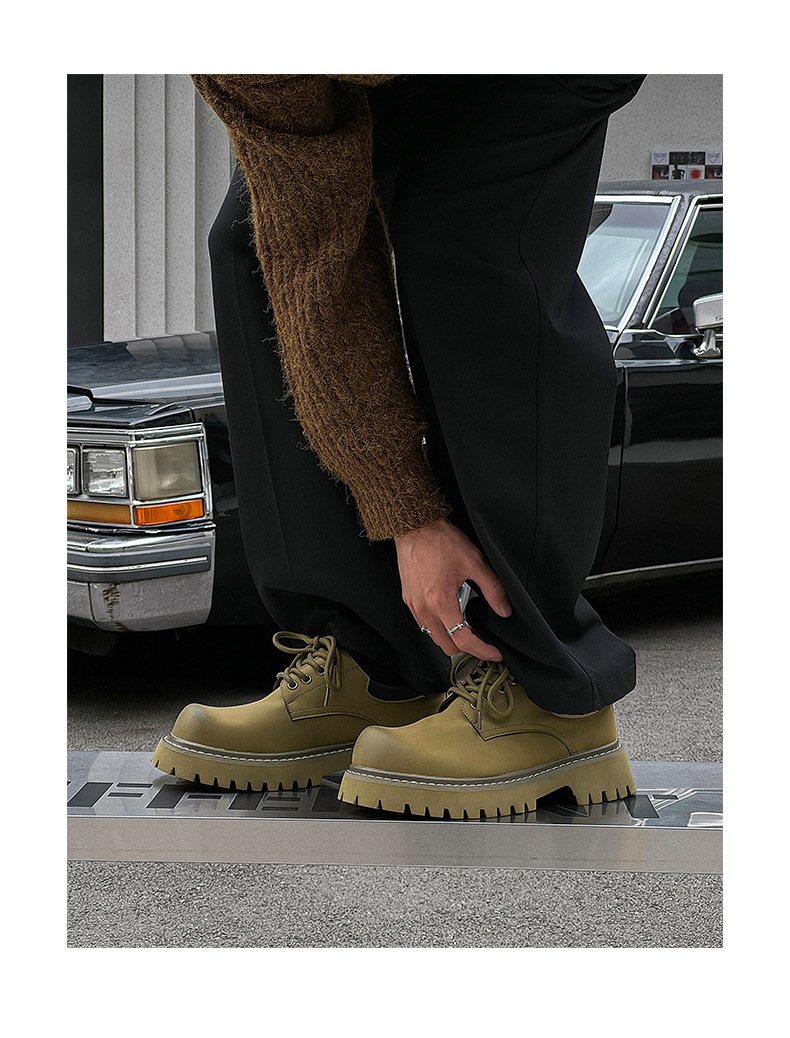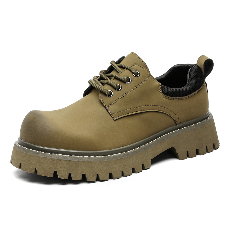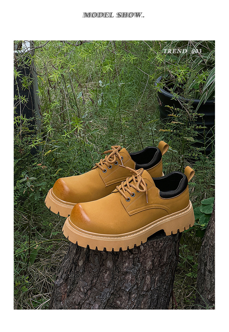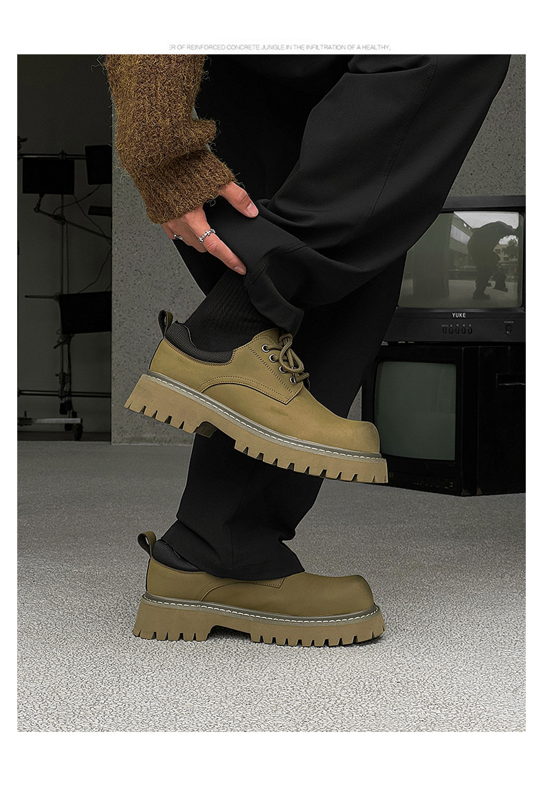 가을 2024 새로운 낮은 최고 두꺼운 단일 높이 증가 남성 신발 큰 발가락 가죽 신발 경량 간단한 스타일 트렌디 올 매치 더비 신발스토어 가기