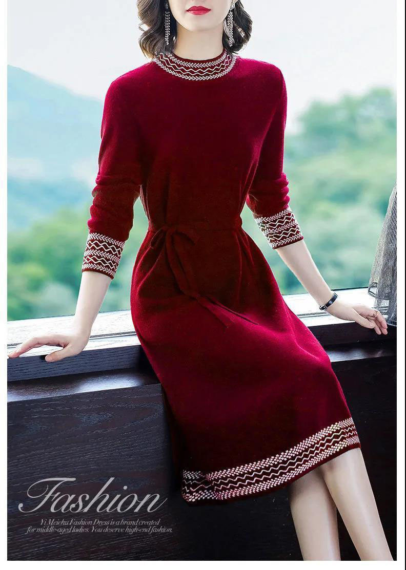 원피스 오버코트 가을과 겨울 우아한 2024 새로운 레이스 업 허리 여성 긴 기모 원피스 여성