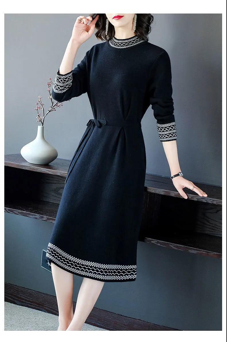 원피스 오버코트 가을과 겨울 우아한 2024 새로운 레이스 업 허리 여성 긴 기모 원피스 여성스토어 가기