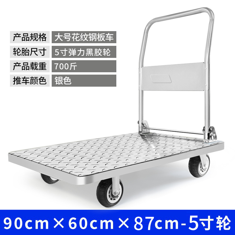 • 8inch 헤비 듀티 탄성 휠이 장착된 은색 강철 자동차 대형 90*60 750kg