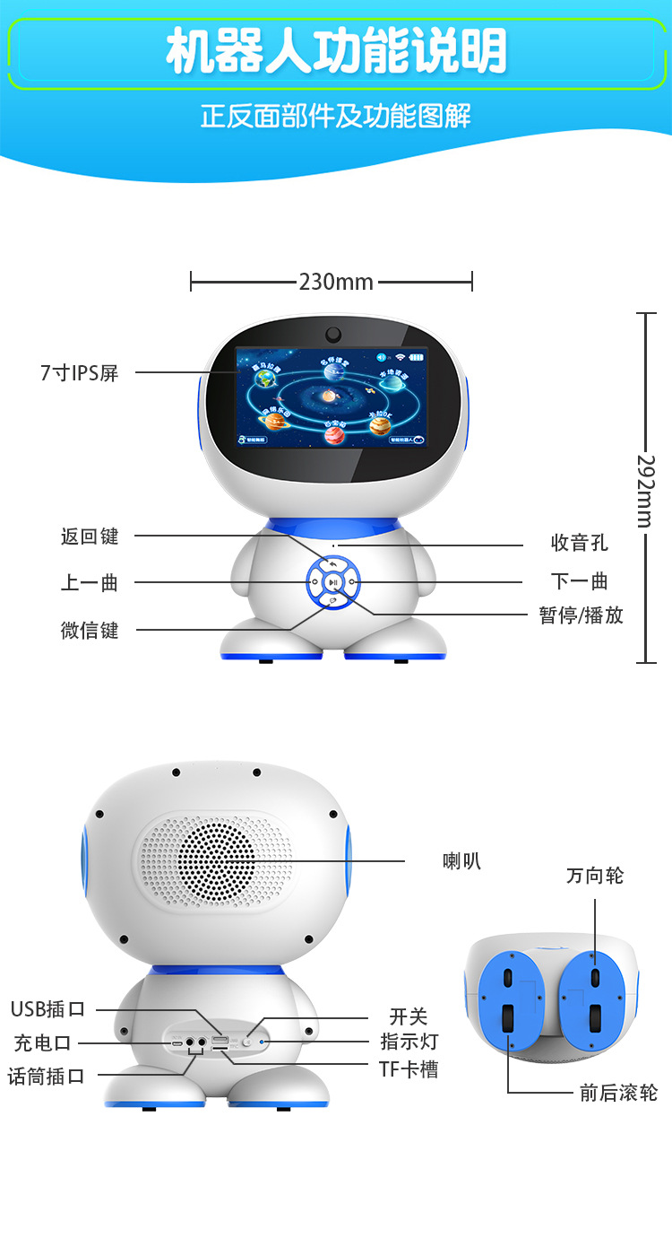 Bei Le Cong 7 인치 터치 스크린 어린이 지능형 로봇 대화 음성 조기 교육 기계 교육 동반 학습 기계스토어 가기
