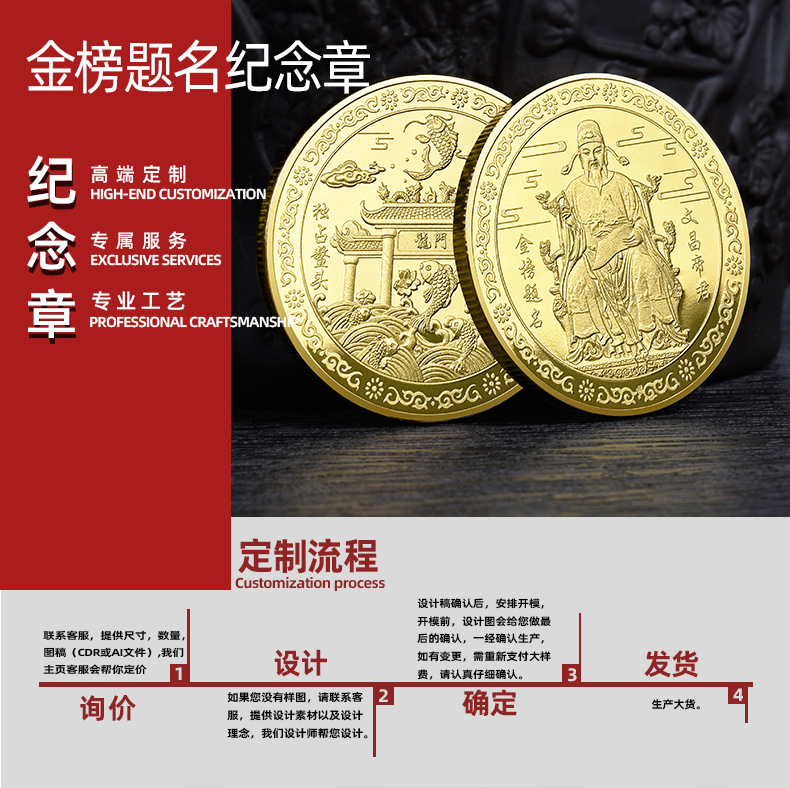 원창 황제 학생들 1 호 기념 메달 입사 수험생 물고기 도약 용 게이트 정신 금 · 실버 동전 판정 가능