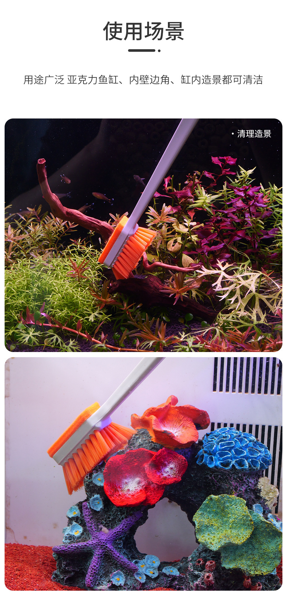 QANVEE Qianrui 어항 청소 브러시 MK5 조류 제거 청소 다기능 오염 제거 도구 어항 긴 손잡이 브러시