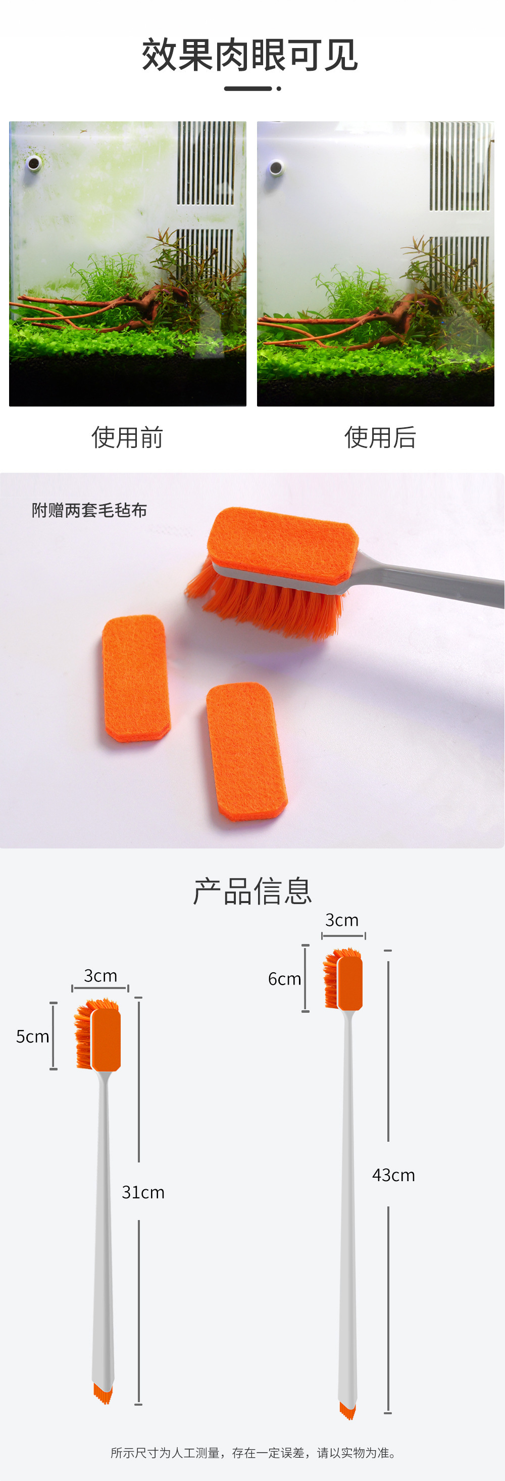QANVEE Qianrui 어항 청소 브러시 MK5 조류 제거 청소 다기능 오염 제거 도구 어항 긴 손잡이 브러시스토어 가기