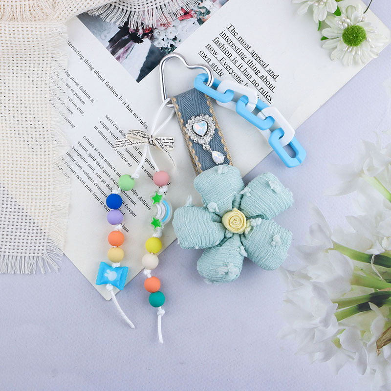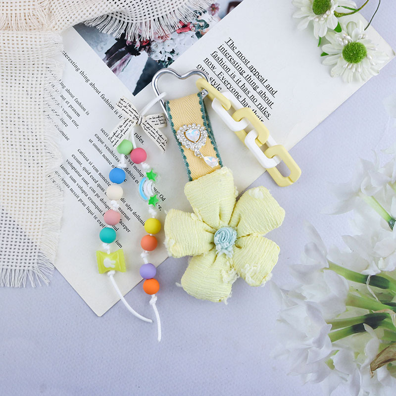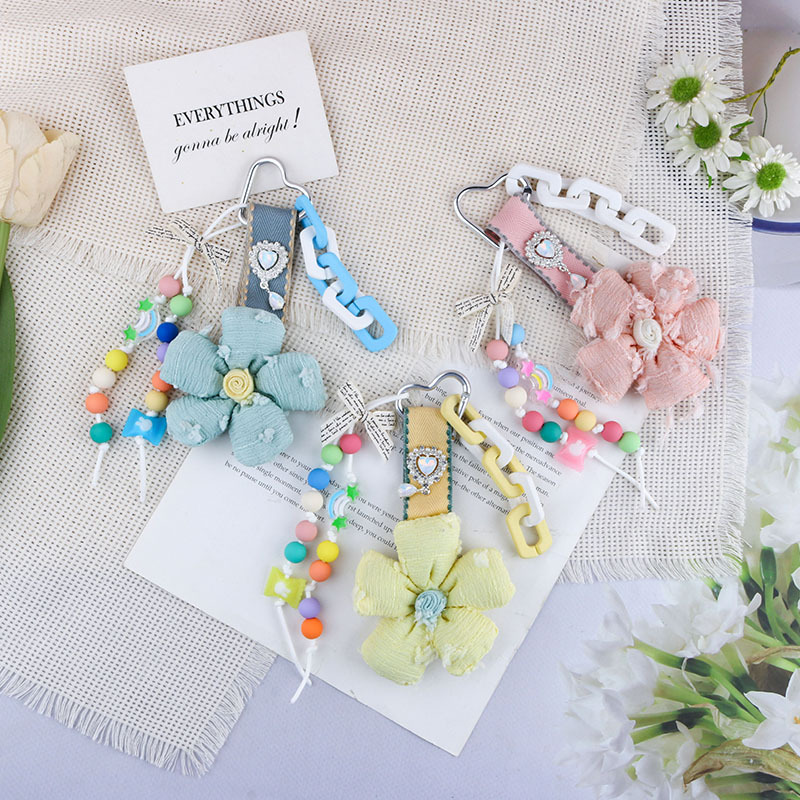창조적 인 새로운 귀여운 원단 컬러 꽃 수지 체인 펜던트 키 체인 모든 경기 교수형 액세서리 휴대 전화 가방 액세서리스토어 가기