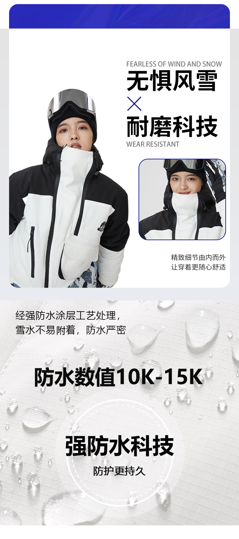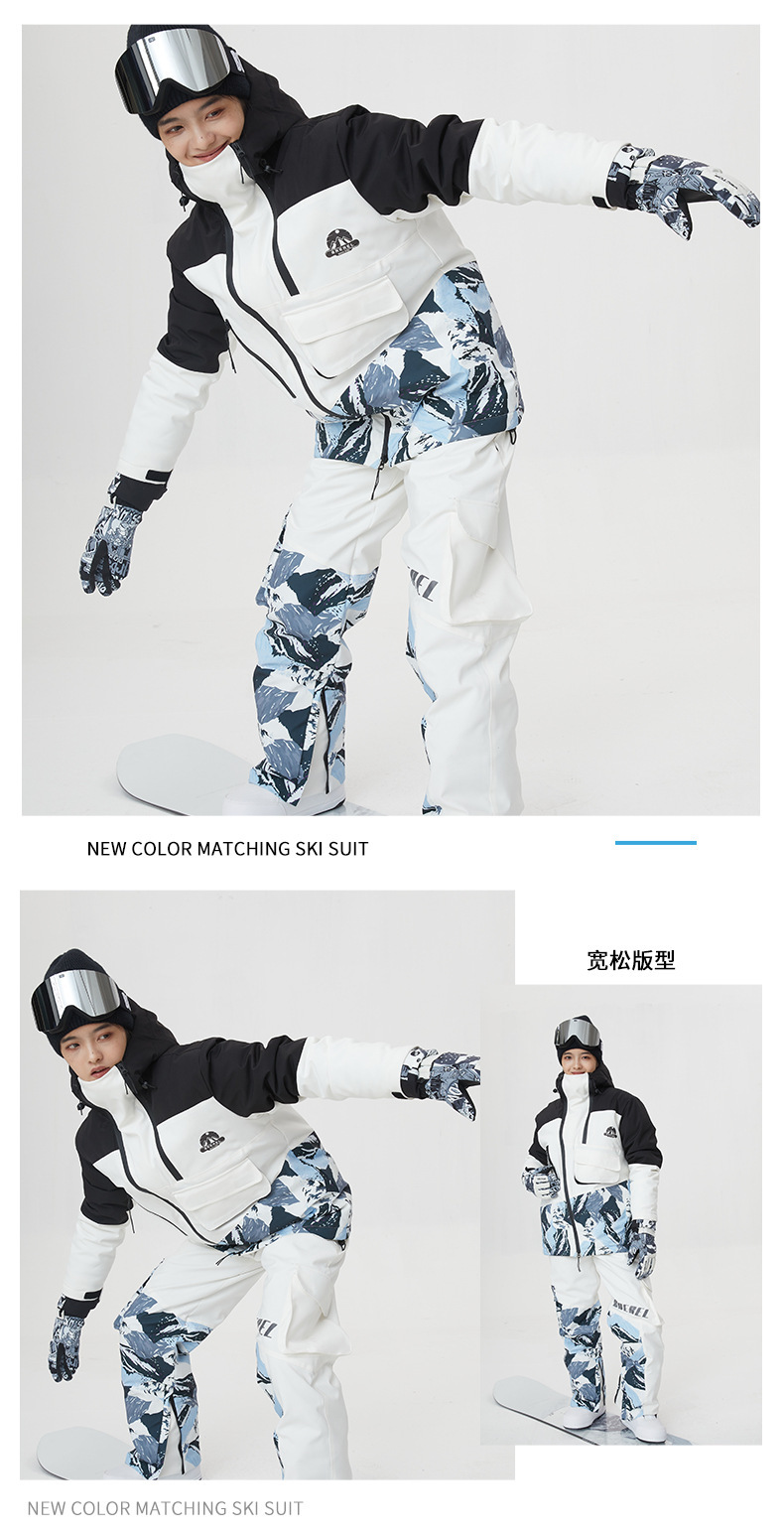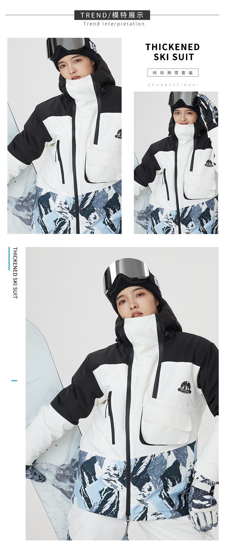 새로운 겨울 스키 세트 세트 여성 방풍 방수 커플 패션 눈 두꺼운 따뜻한 스키 세트 재고 면화
