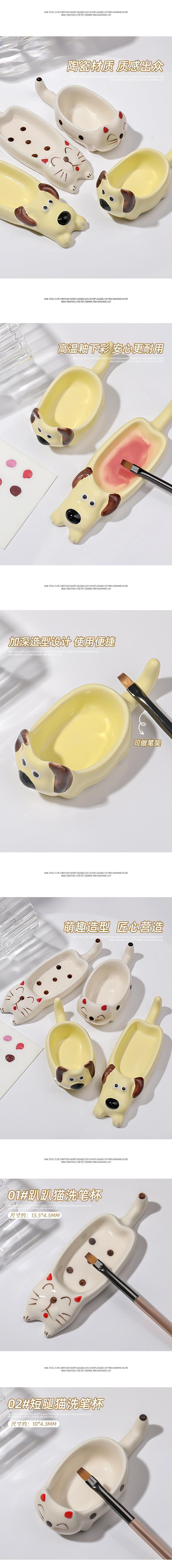 네일 아트 도구 귀여운 만화 짧은 다리 개 짧은 다리 고양이 세척 펜 플레이트 새로운 창조적 인 사랑스러운 세라믹 세척 펜 컵 도매