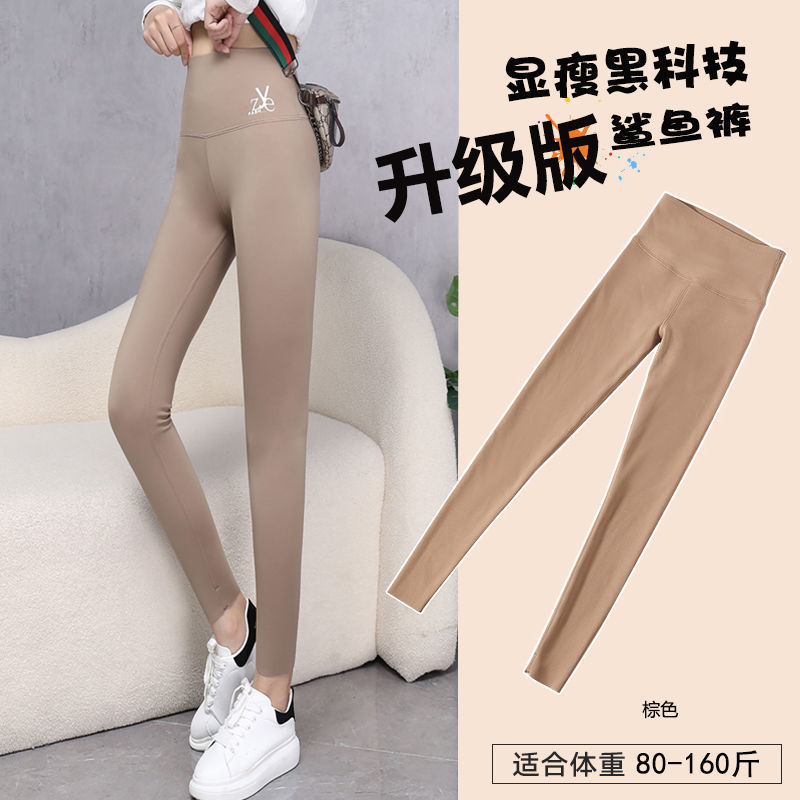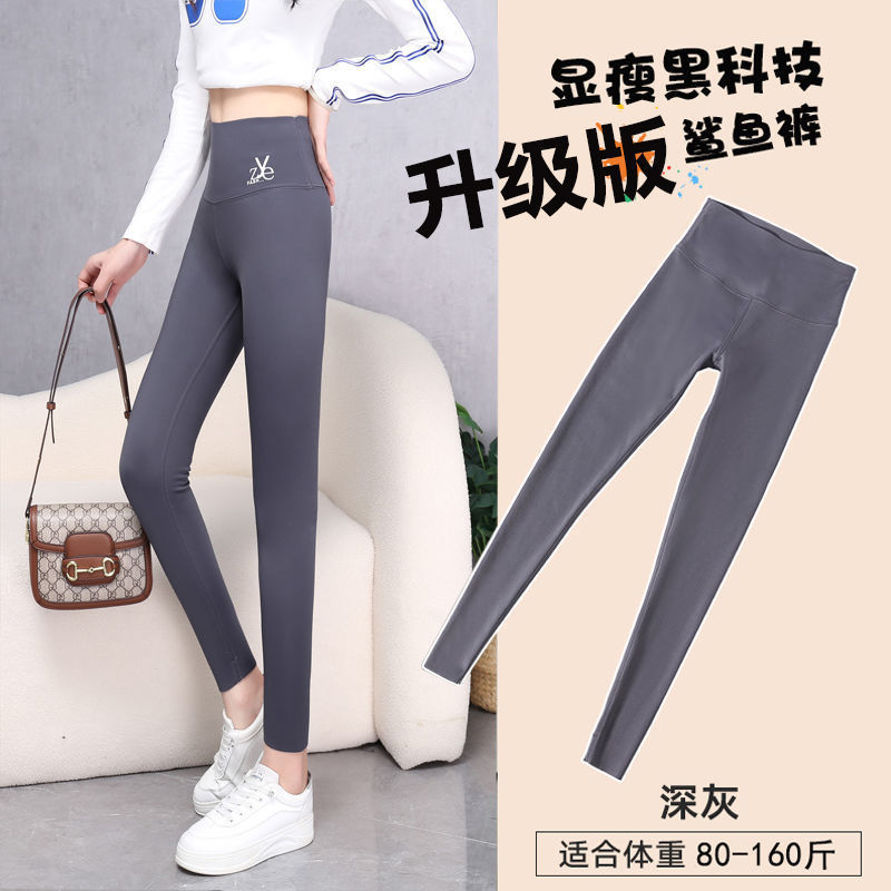 가을 겨울 레깅스를 기모 상어 바지 여성용 외부 착용 높은 허리 두꺼운 따뜻한 면 바지 스키니 다리 강한 압력 요가 바비 바지