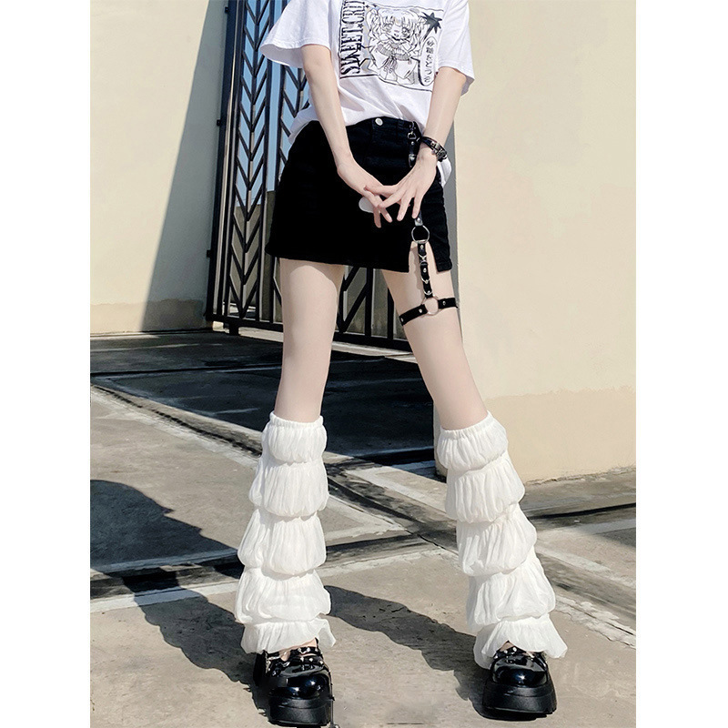 화이트 혼 넓은 다리 양말 여성의 얇은 일본 Y2K 하위 문화 개인화 된 패션 달콤한 소녀 다리 슬리브 슬림 송아지스토어 가기