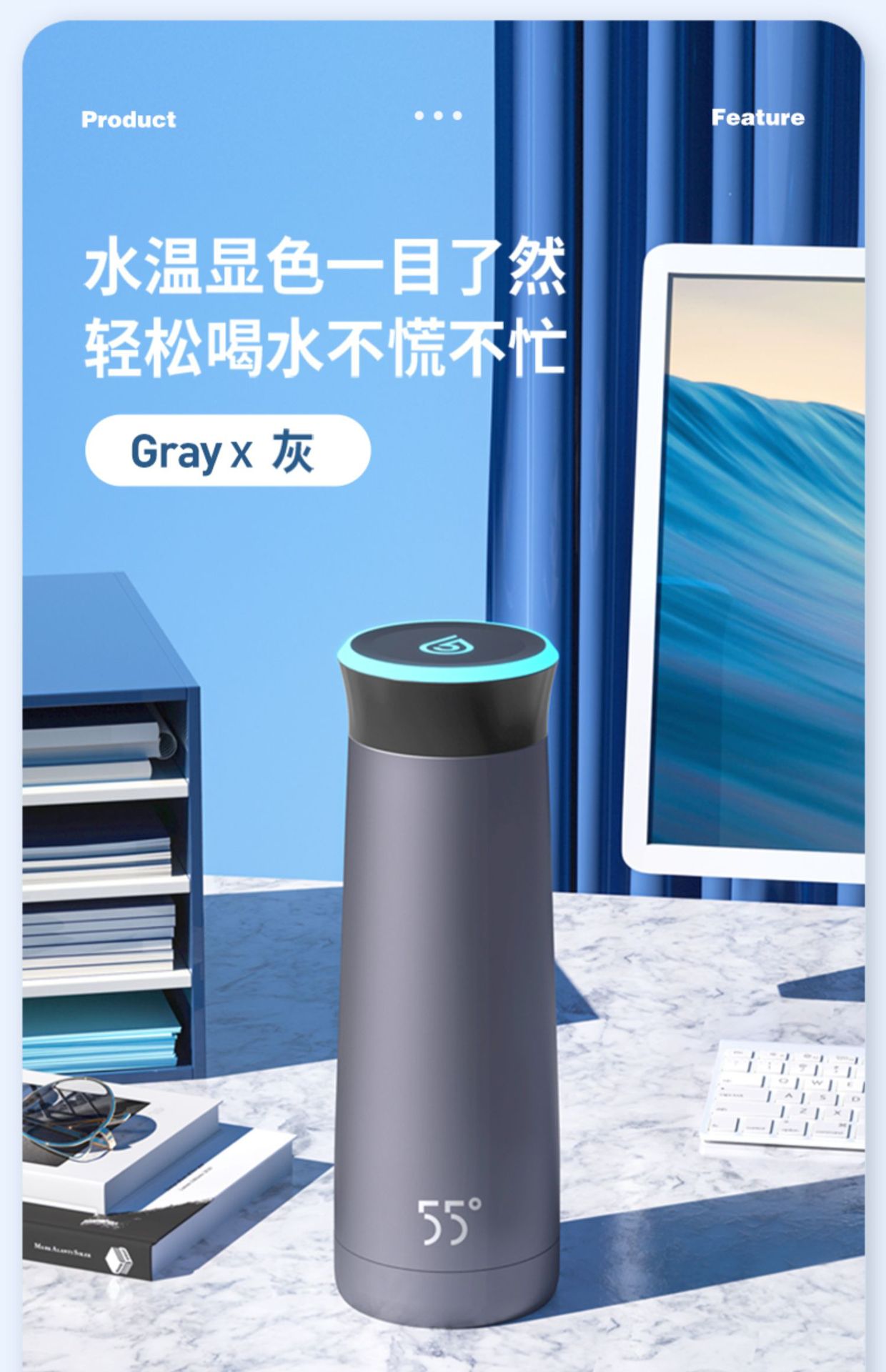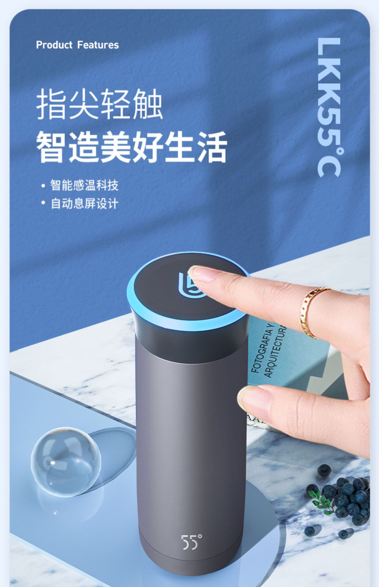 LKK55 ℃ 지능형 냉각 컵 일정한 온도 절연 여학생 남자의 빠른 냉각수 컵스토어 가기