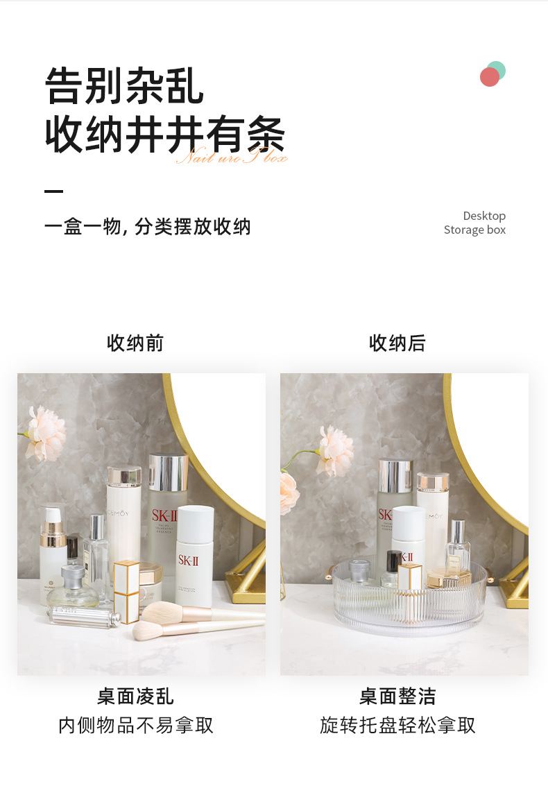 화장품 회전 저장 상자 서랍 데스크탑 화장품 보관 및 마무리 고급 감각 데스크탑 회전 저장 트레이