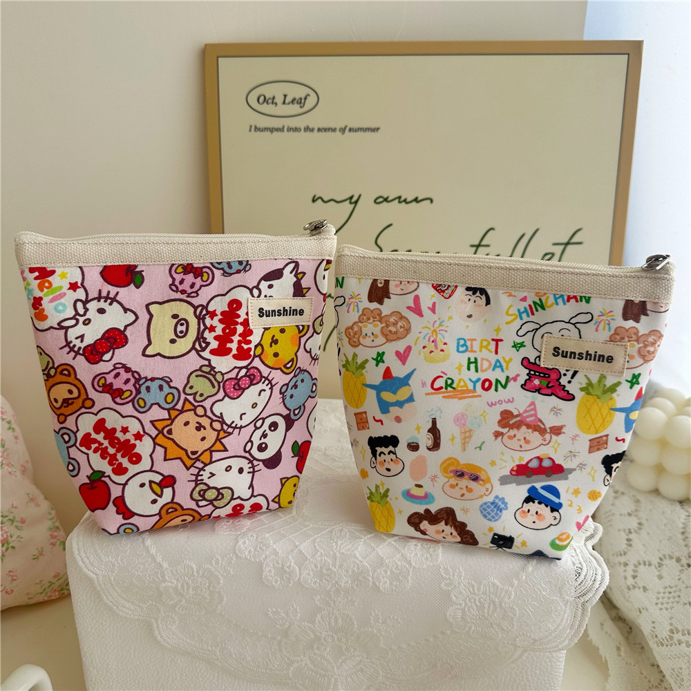 고밀도 인쇄 면 지퍼 화장품 가방 빨간 가방 만화 하라다 우유 소녀 직물 화장품 보관 가방스토어 가기