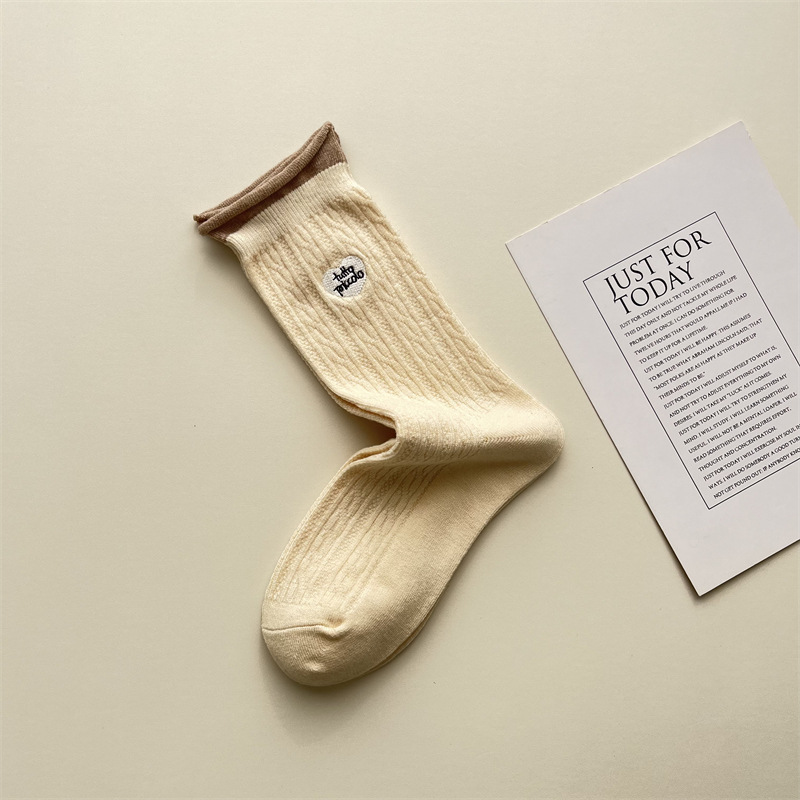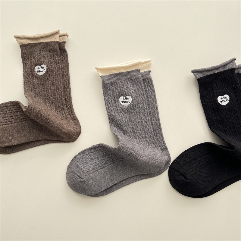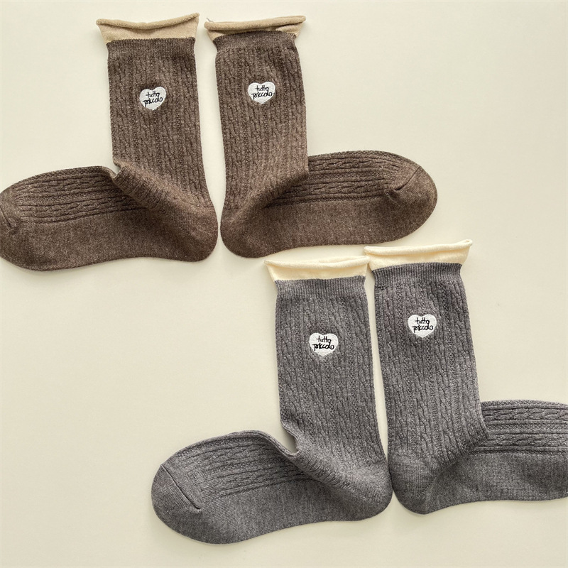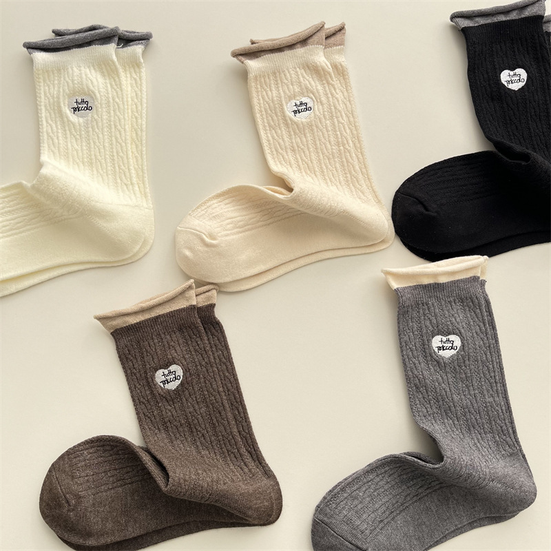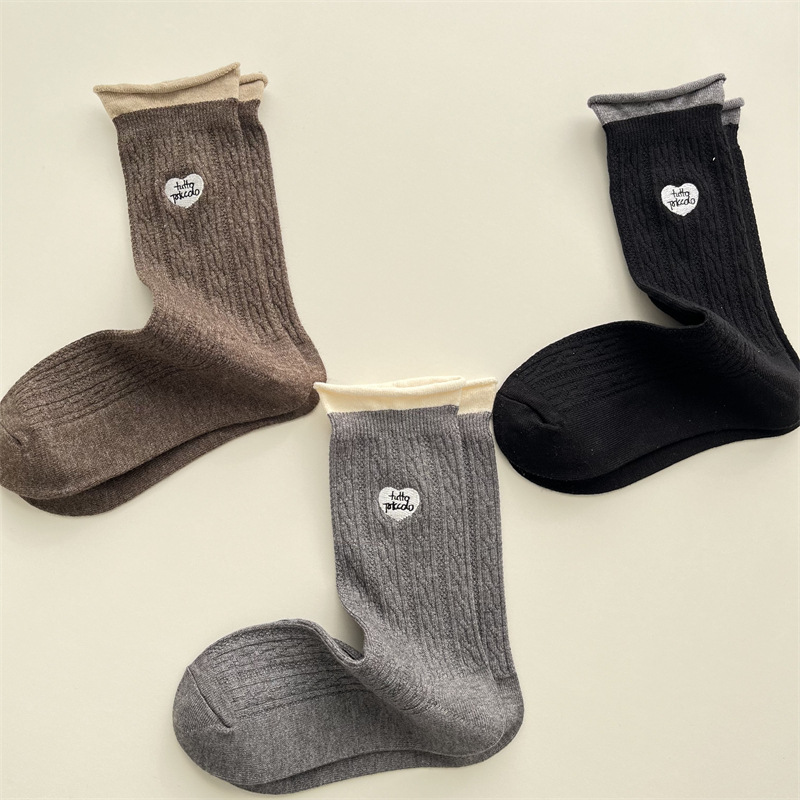 가을과 겨울의 새로운 사랑 자수 캐시미어 양말 여성 일본식 복고풍 트위스트 미드 양말 모든 경기스토어 가기