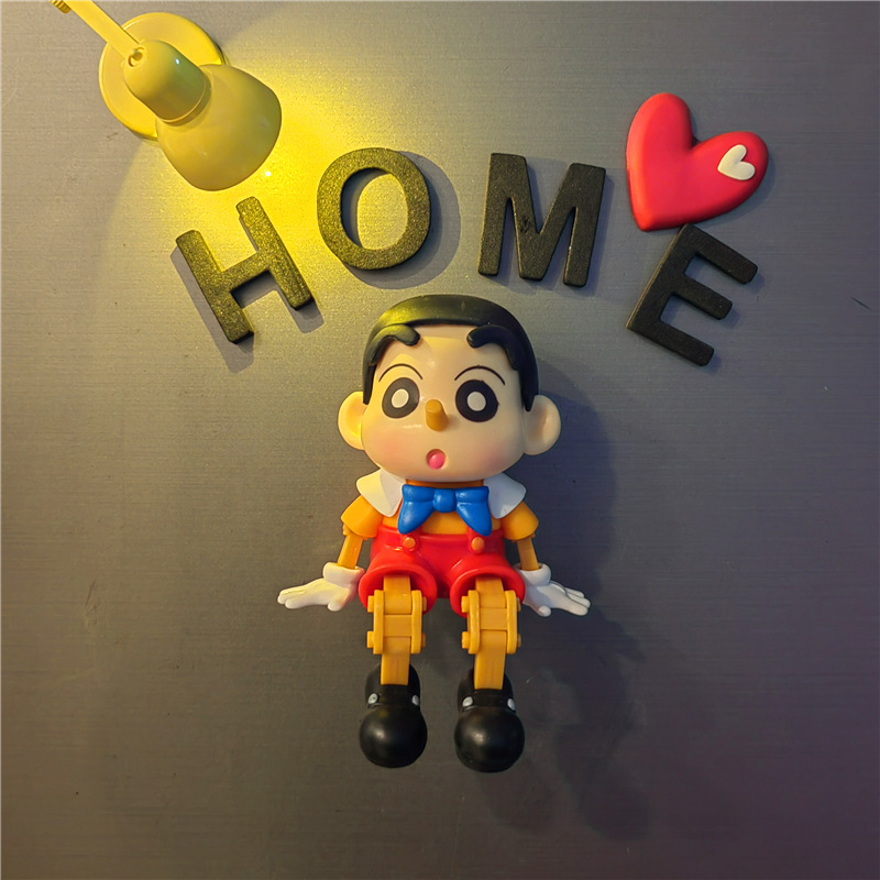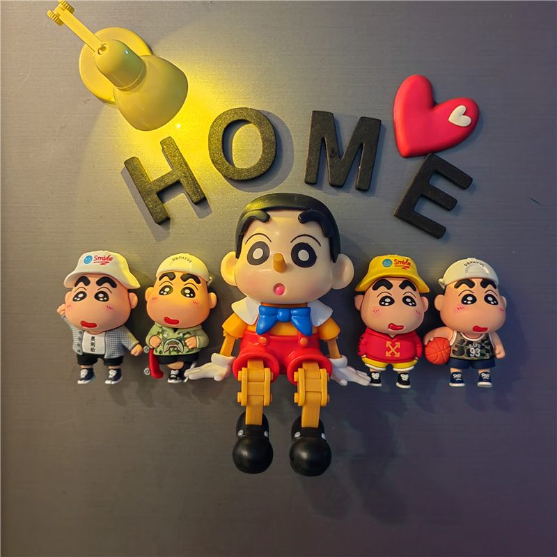 • 긴 코 + 작은 신짱 4마리 + 책상 램프 편지 사랑 냉장고 자석 스티커 - 소형