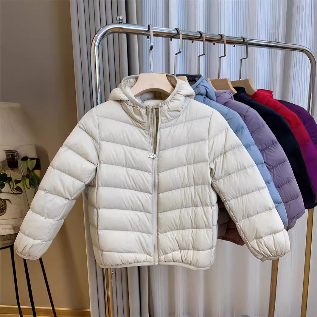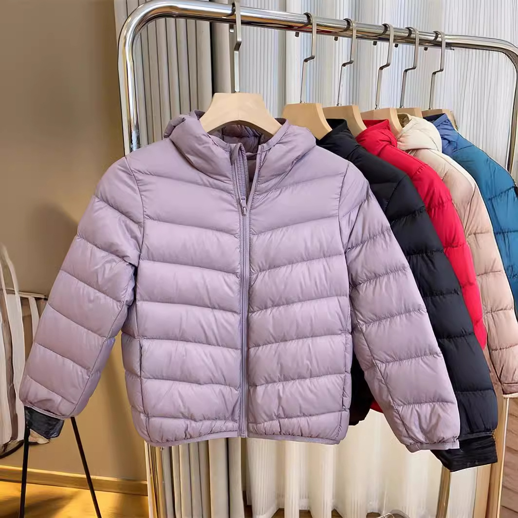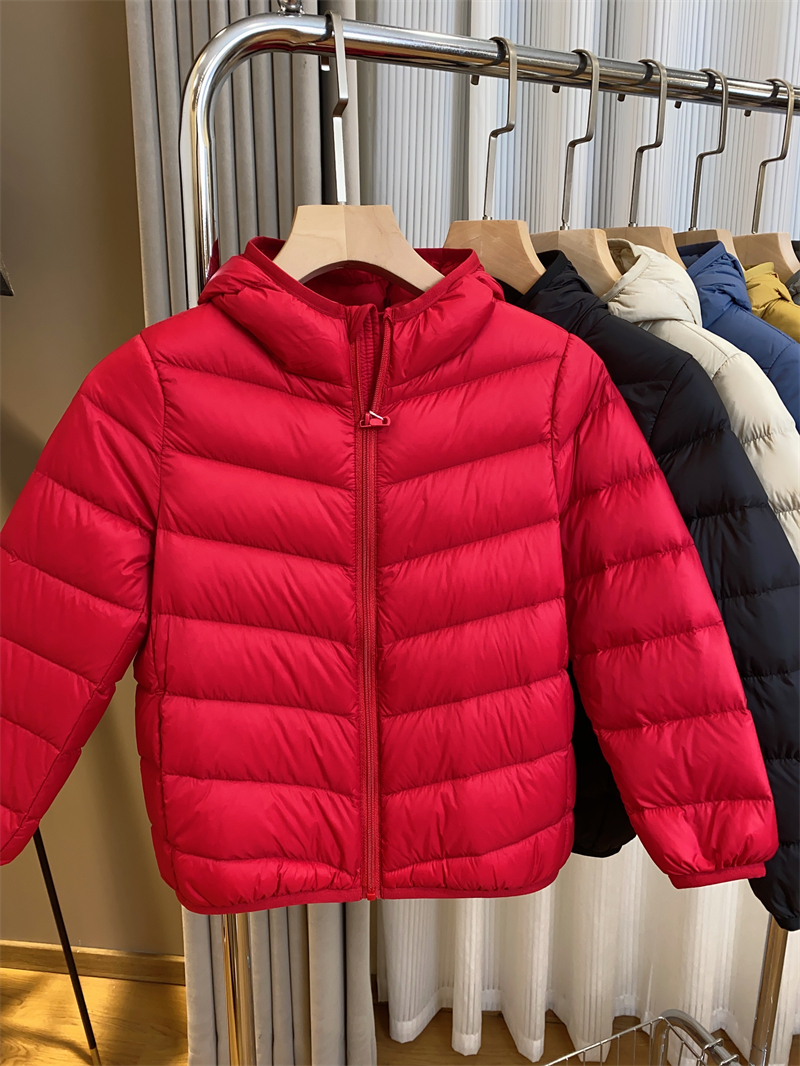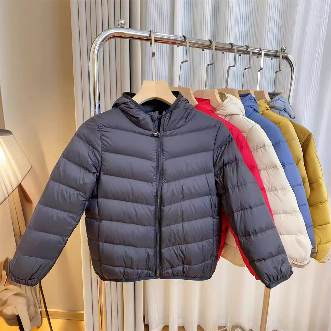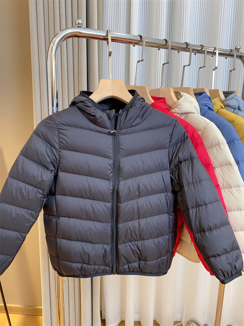 남학생과 여학생을위한 새로운 어린이 경량 후드 다운 재킷 중 큰 어린이 짧은 서양식 코트 90 벨벳스토어 가기