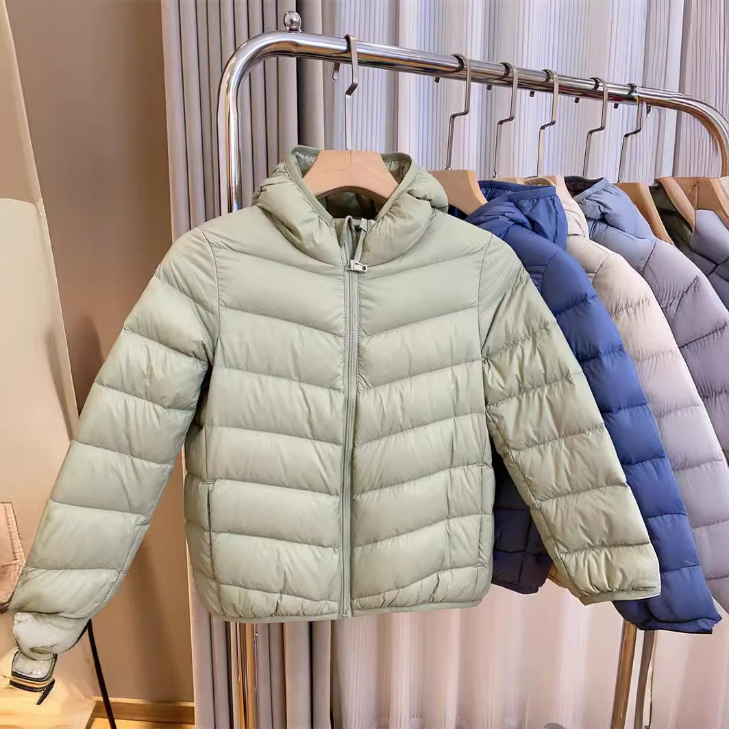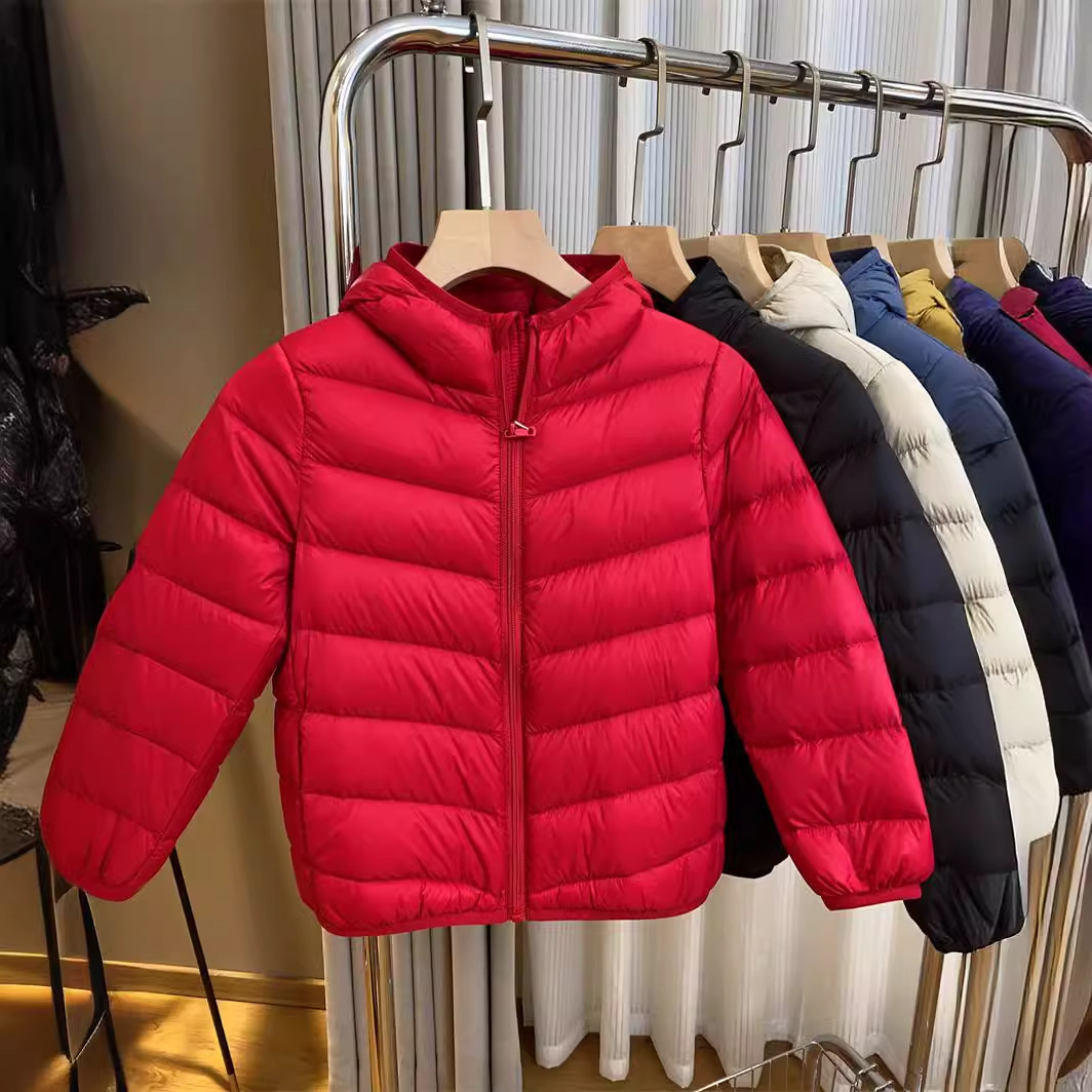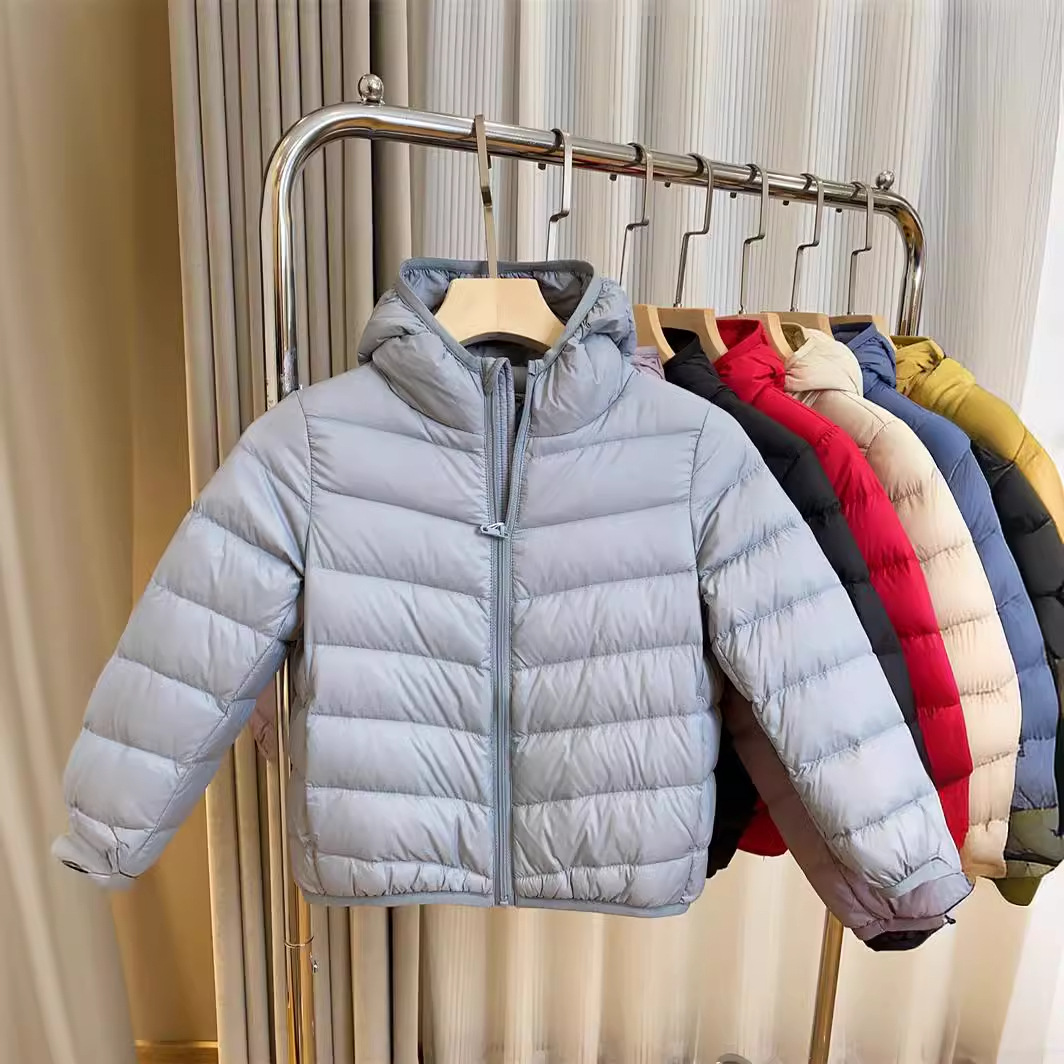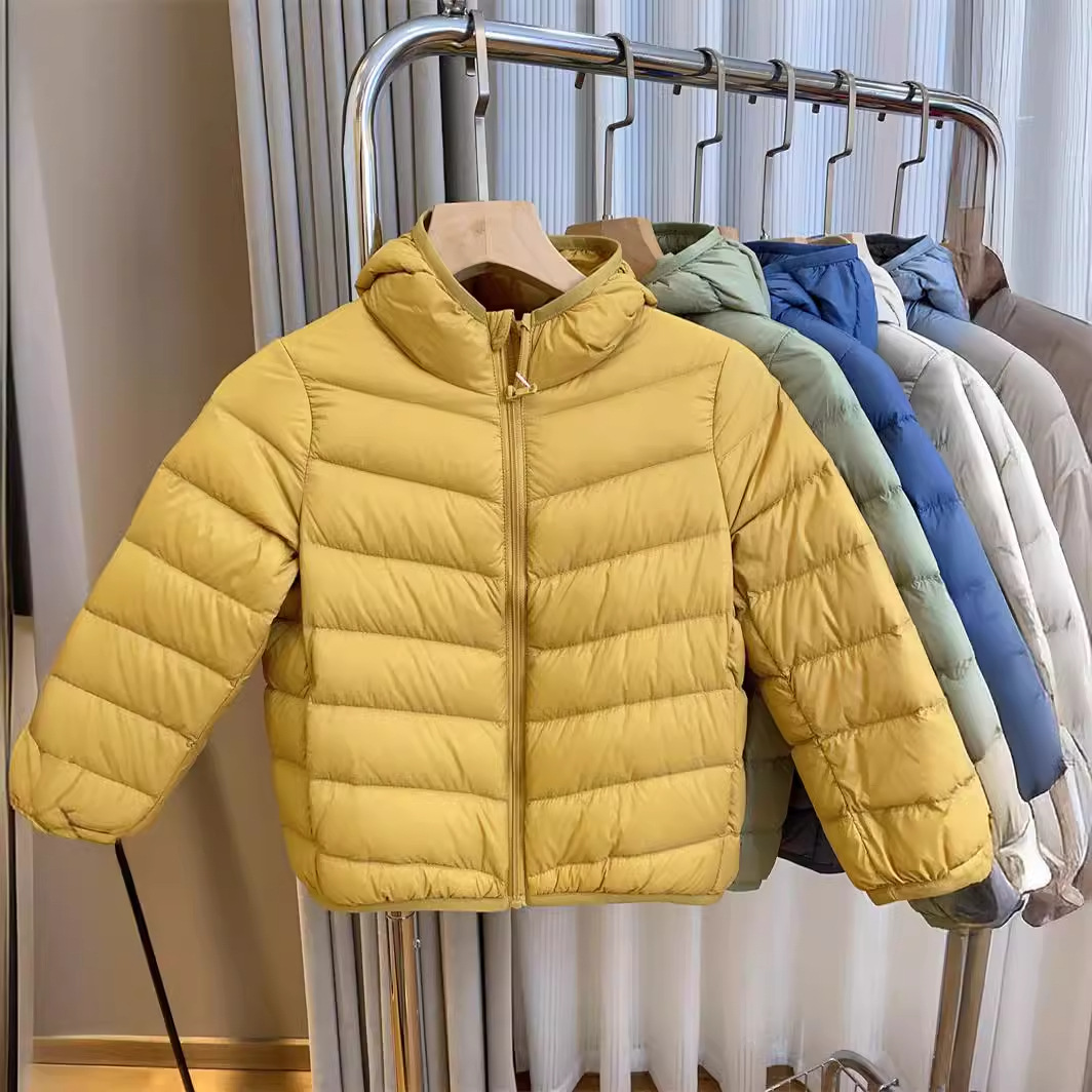 남학생과 여학생을위한 새로운 어린이 경량 후드 다운 재킷 중 큰 어린이 짧은 서양식 코트 90 벨벳스토어 가기