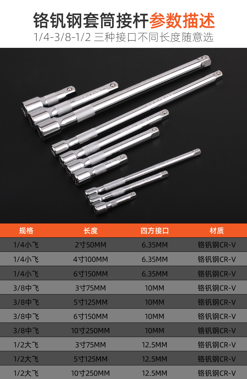 대형, 중형 및 소형 비행 용 1/2 확장 로드 연결 슬리브 포스 연장 로드 커넥팅로드 스크루 드라이버 배치 렌치 자동 수리 도구 확장로드스토어 가기