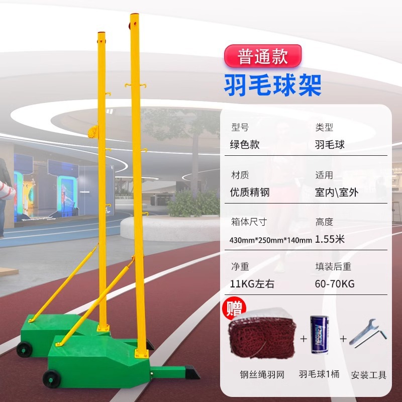 • 녹색 일반 배드민턴 스탠드 + 6.1m 강철 와이어 배드민턴 네트 + 1 버킷 볼