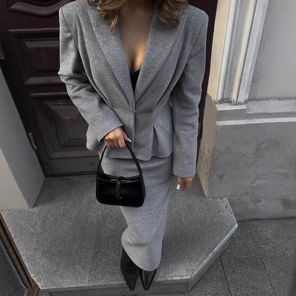 2025년 봄 유럽 및 미국 스타일 크로스보더 아마존 신상 패션 허리라인 강조 우아한 정장 재킷과 스커트 여성용스토어 가기