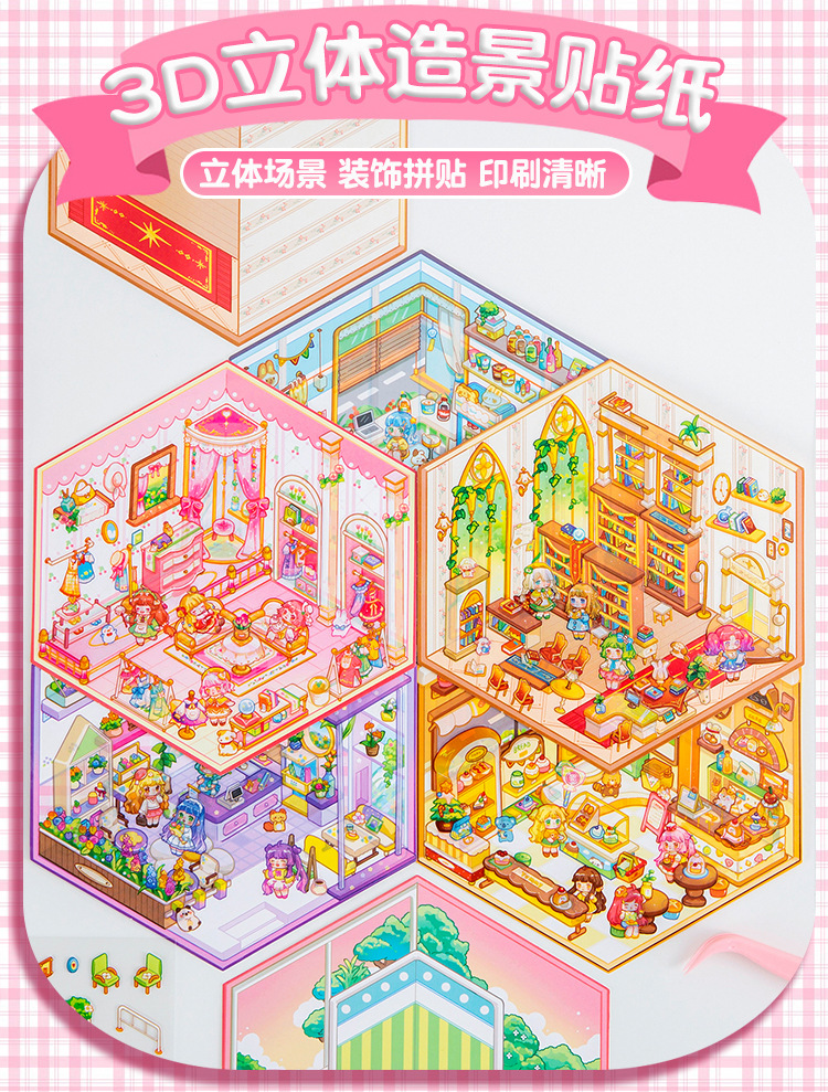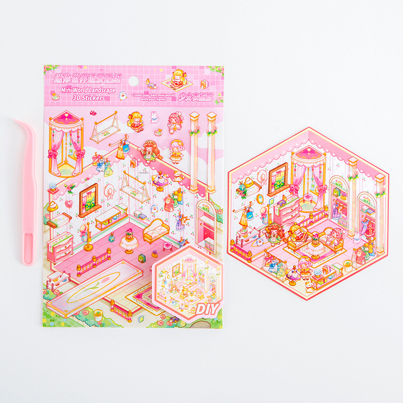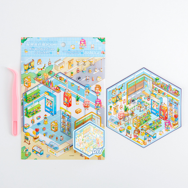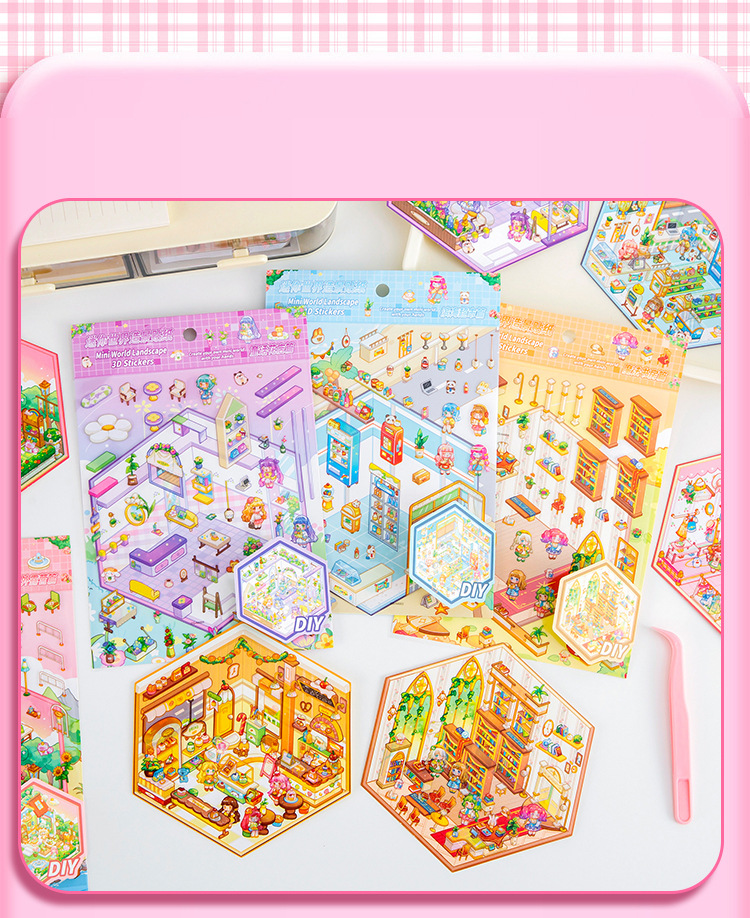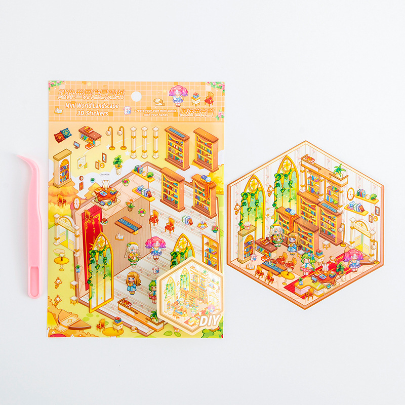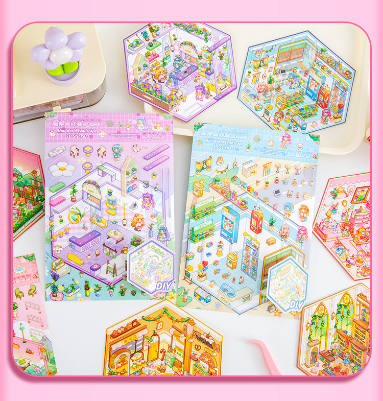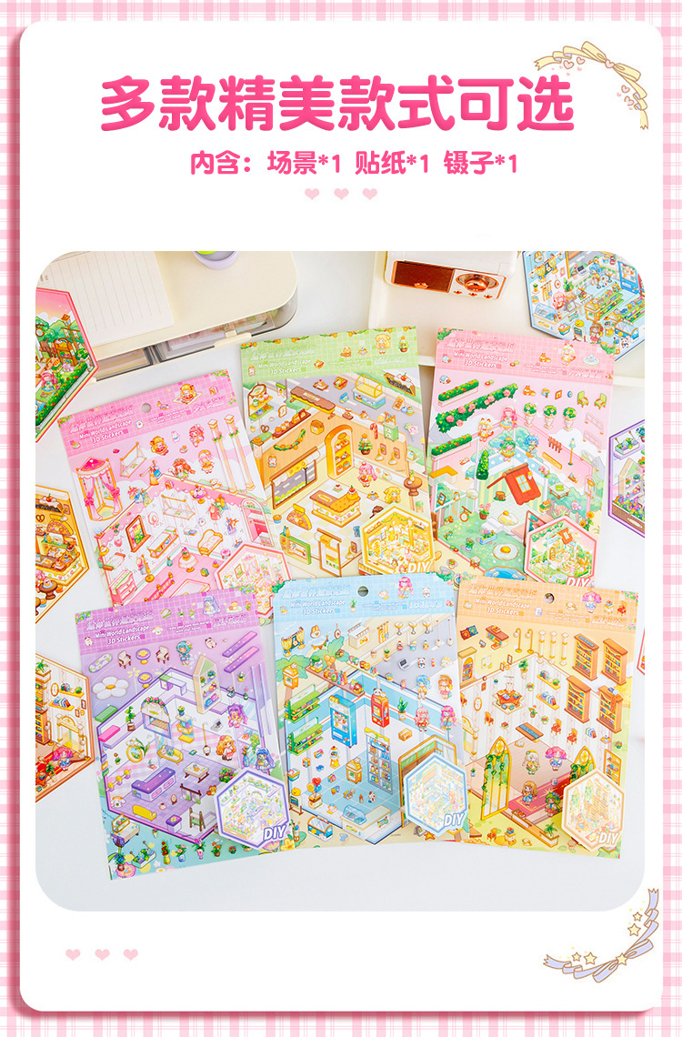 만화 조경 스티커 귀여운 미니어처 세계 3D 입체 오두막 작은 빨간 책 감압 DIY 장면 손 계정 스티커스토어 가기