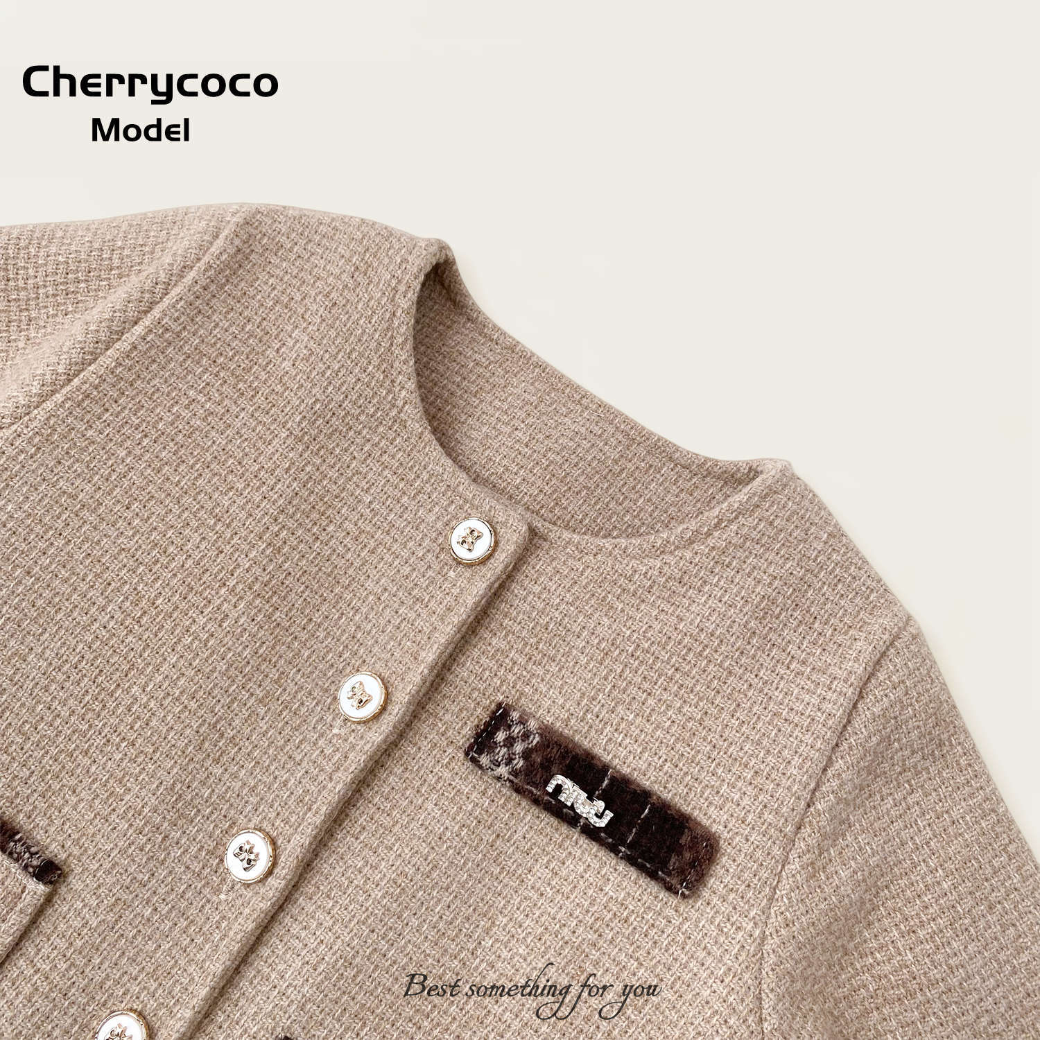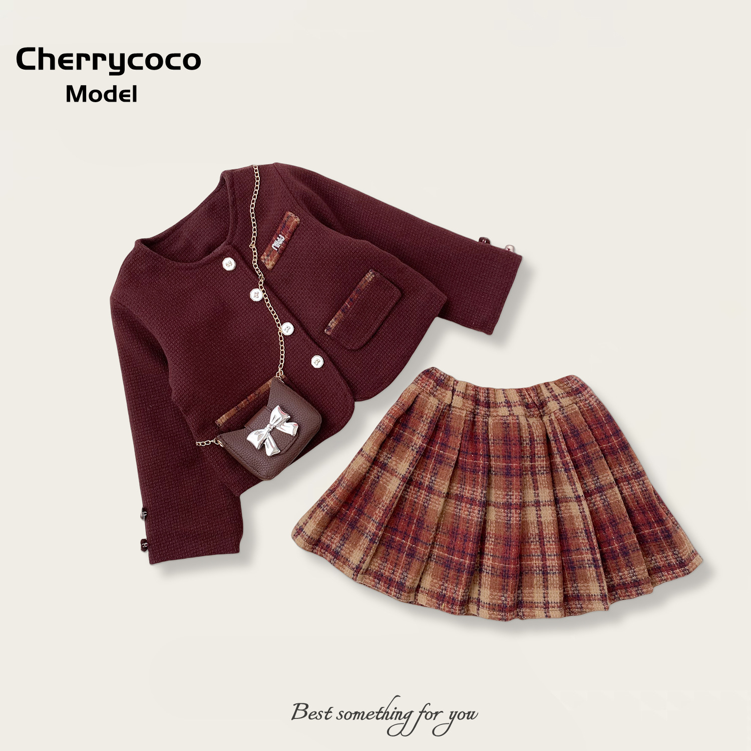 Cherrycoco 겨울 신작 miu 시리즈 소녀 작은 향기로운 모직 재킷과 벨벳 스커트 3 피스 슈트