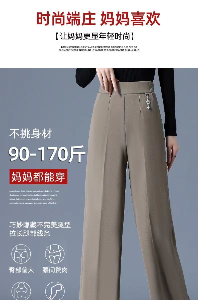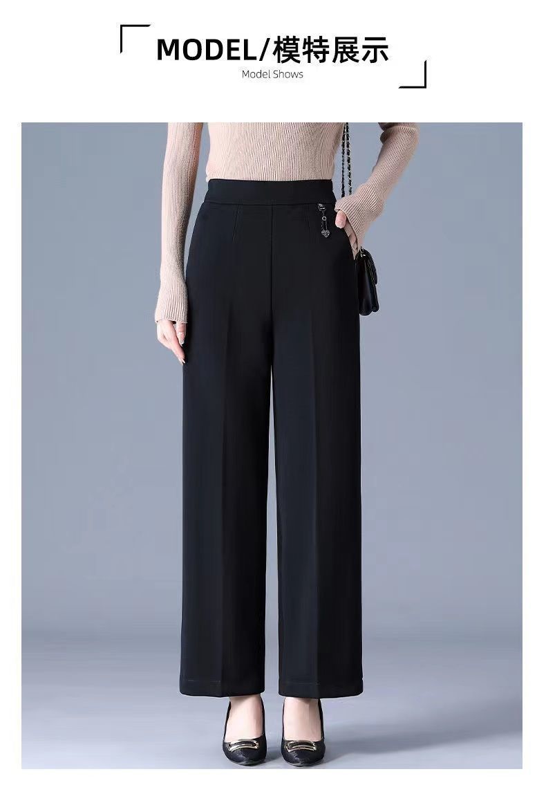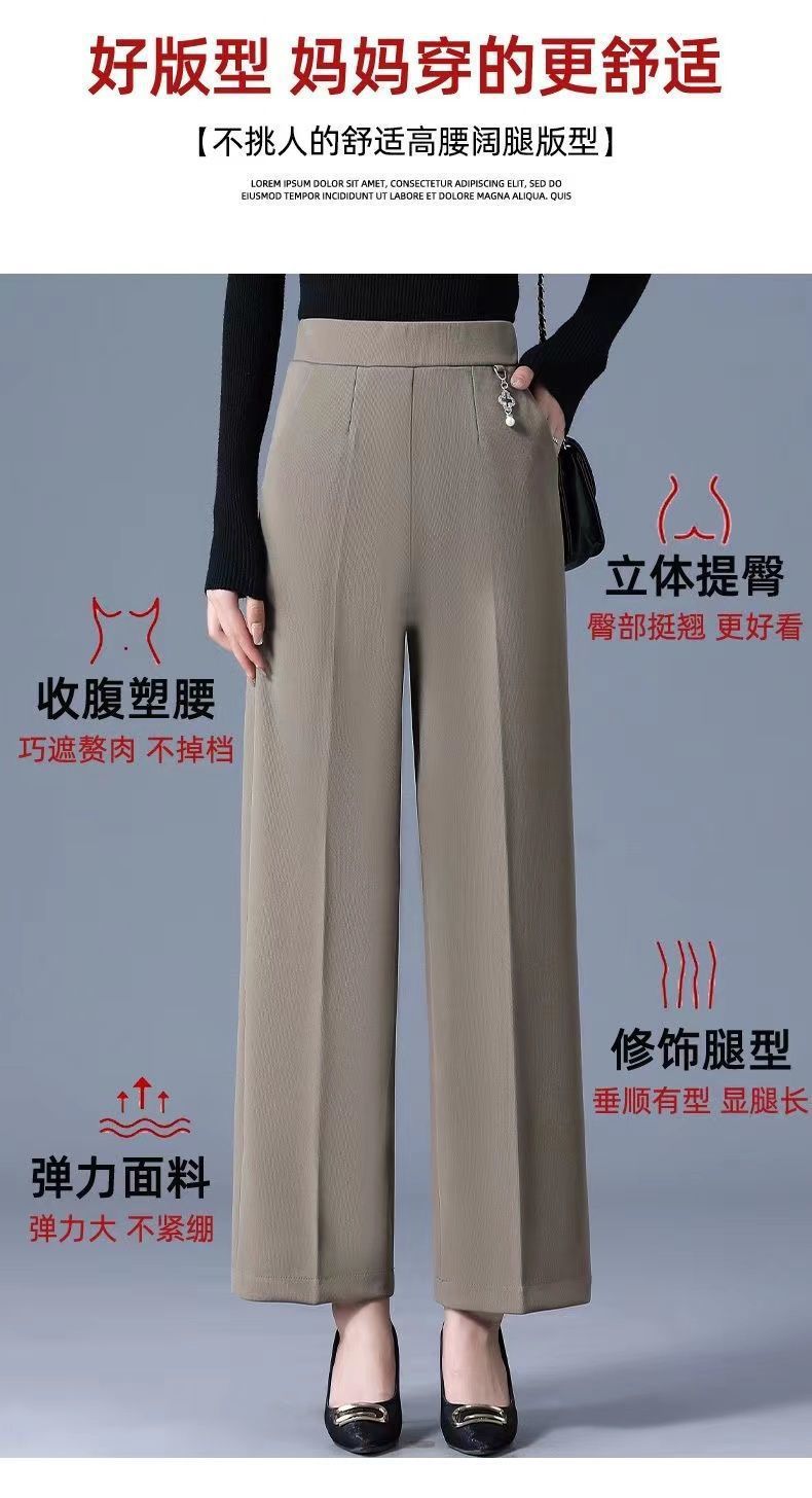 중년 및 노인 어머니 바지 2024 봄과 여름 얇은 여성의 높은 허리 캐주얼 와이드 레그 바지 느슨한 가을 및 겨울 스트레이트 바지스토어 가기
