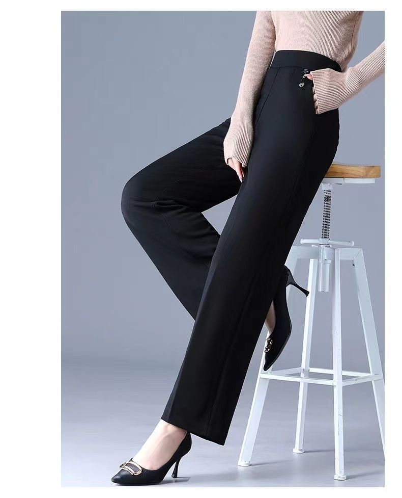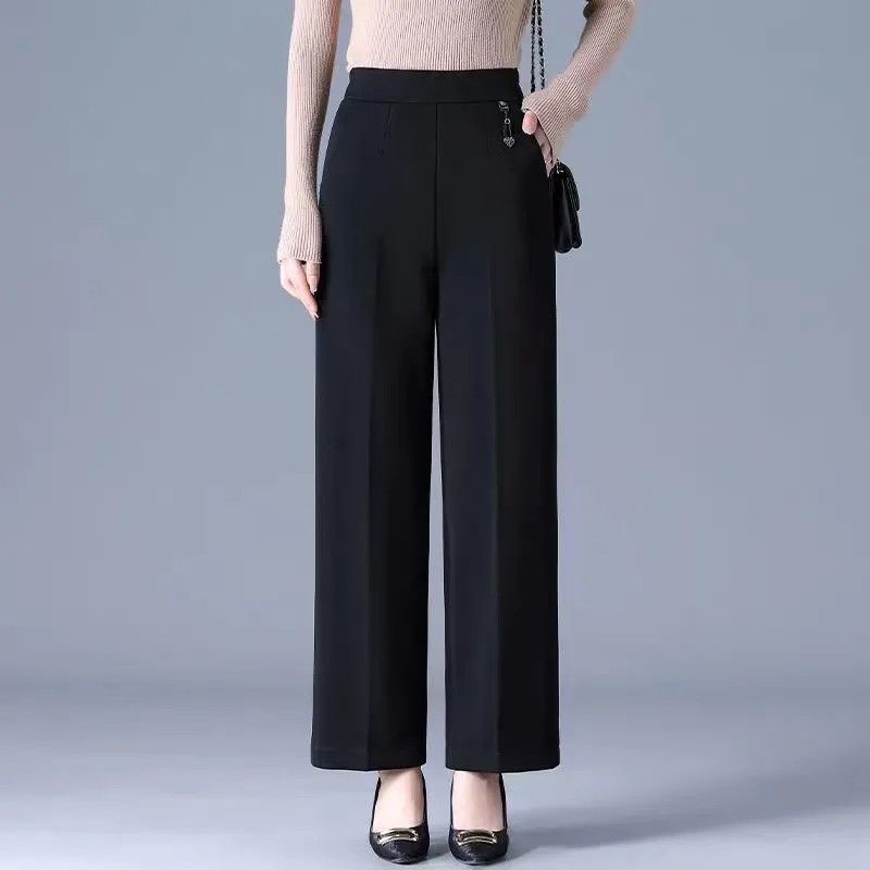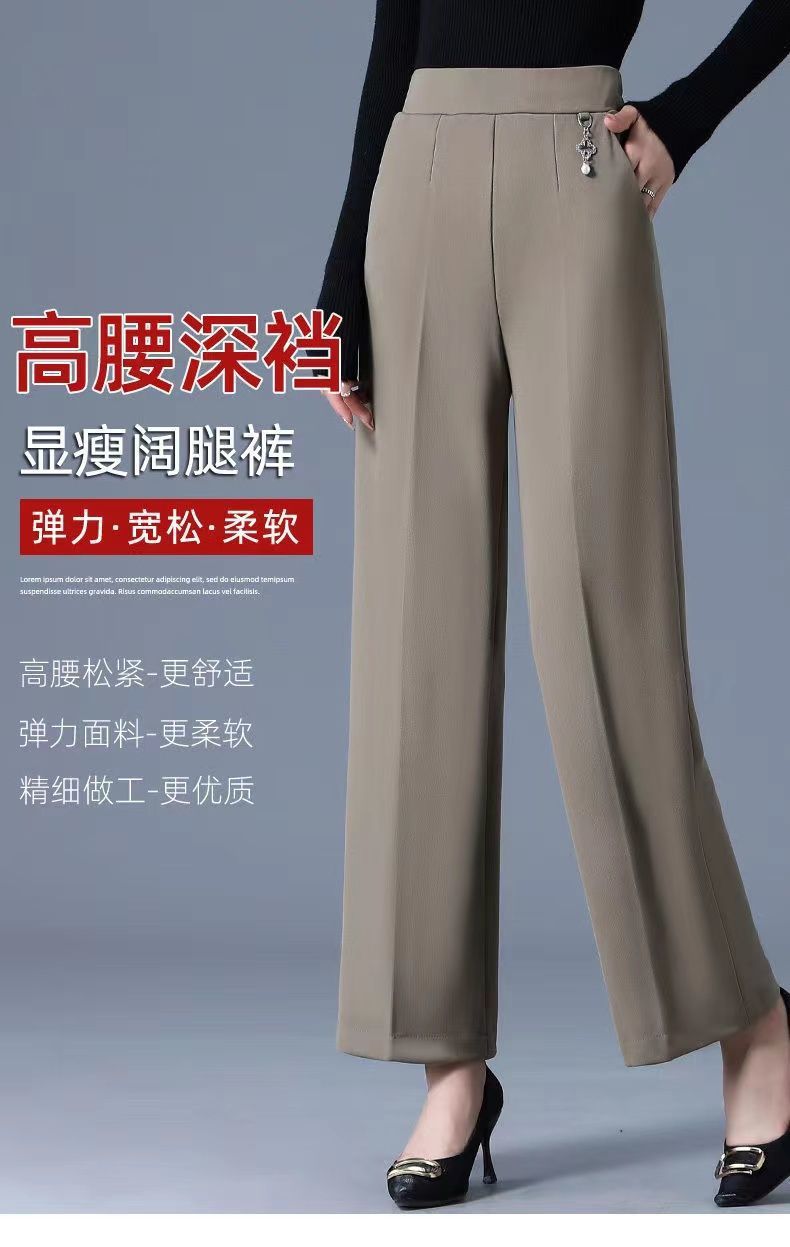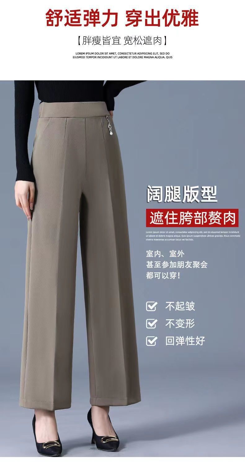 중년 및 노인 어머니 바지 2024 봄과 여름 얇은 여성의 높은 허리 캐주얼 와이드 레그 바지 느슨한 가을 및 겨울 스트레이트 바지스토어 가기