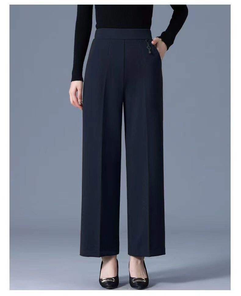 중년 및 노인 어머니 바지 2024 봄과 여름 얇은 여성의 높은 허리 캐주얼 와이드 레그 바지 느슨한 가을 및 겨울 스트레이트 바지