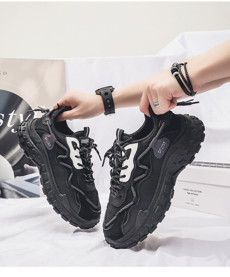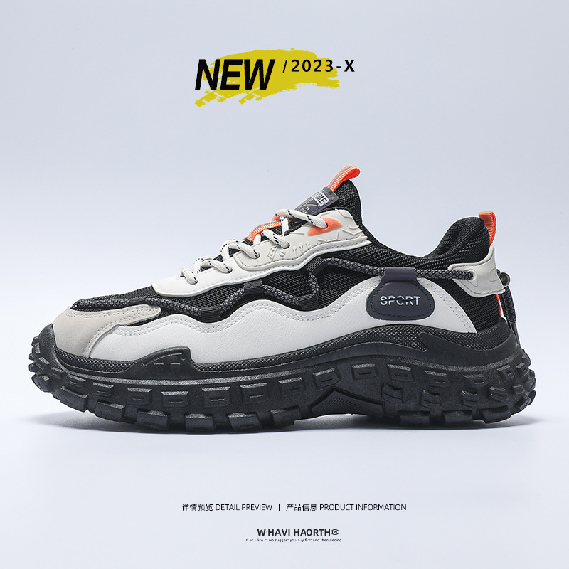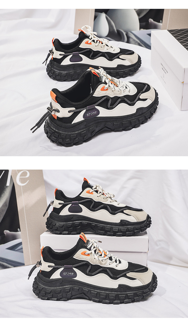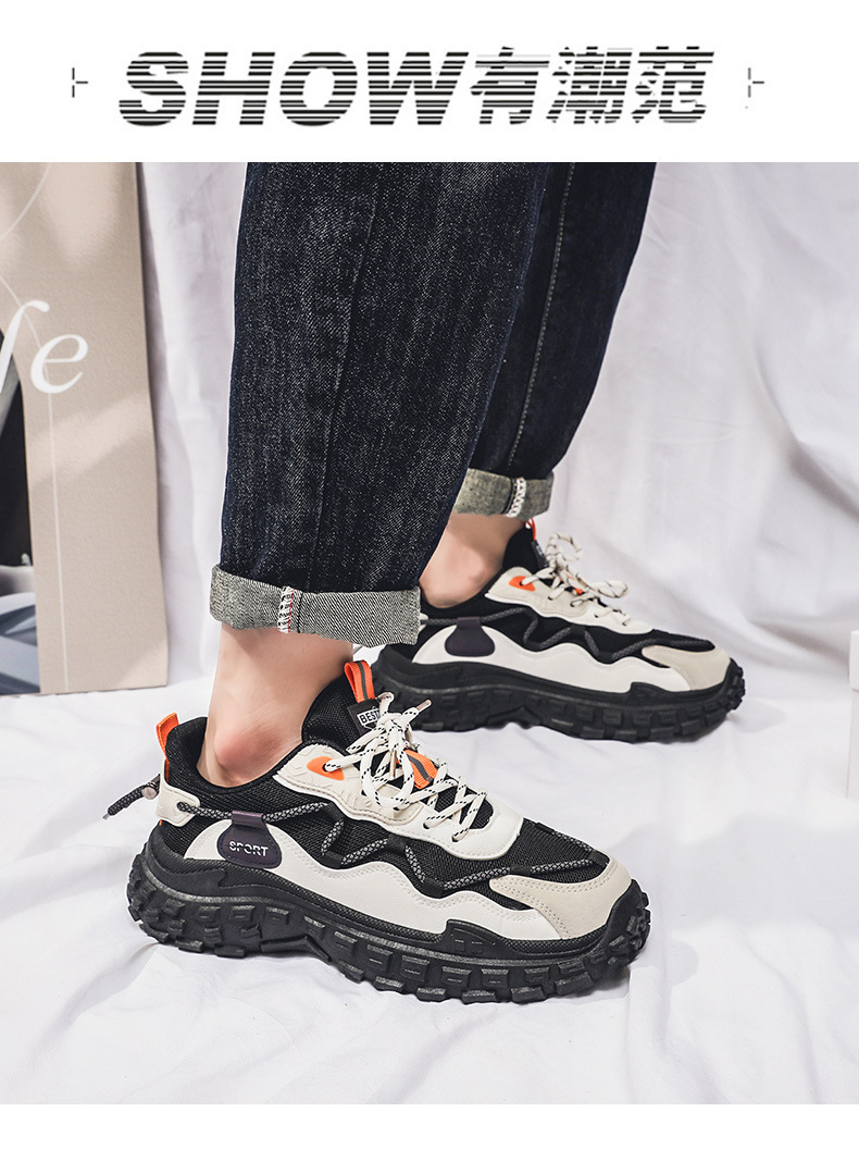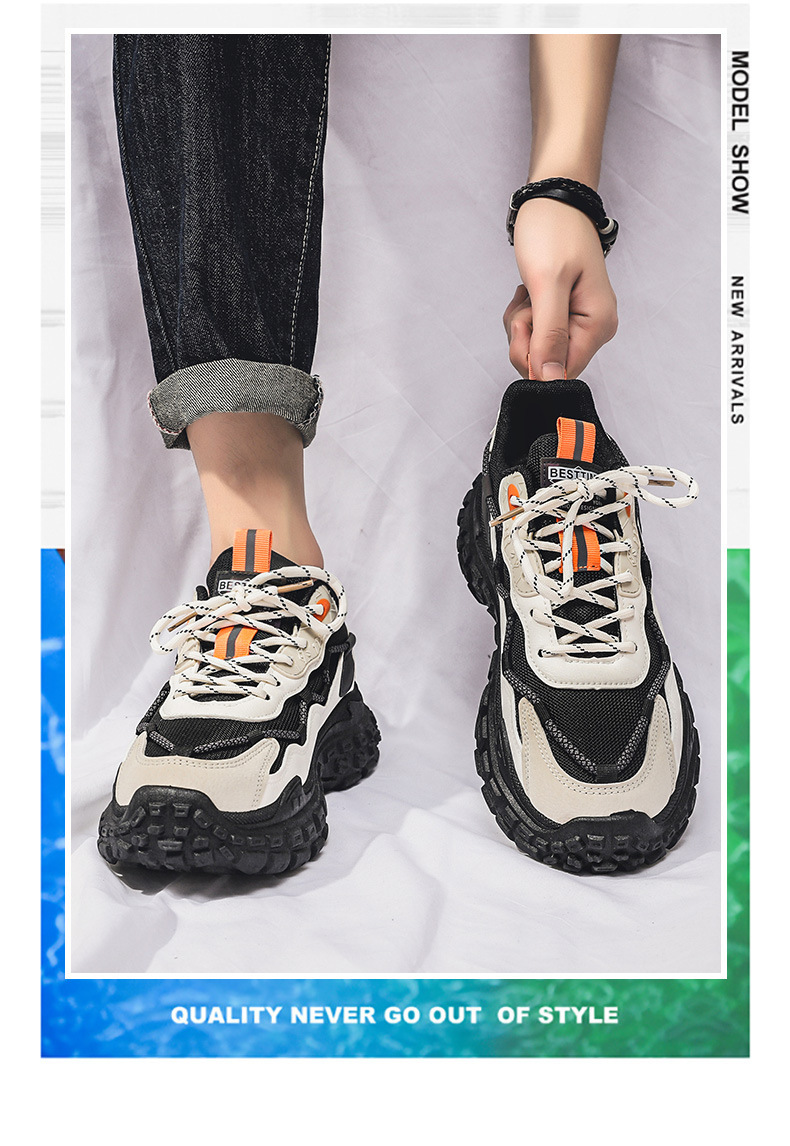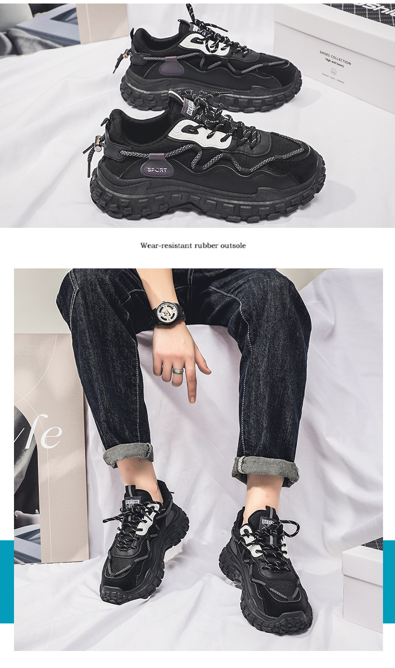 인터넷 유명 인사 인기있는 남성 신발 여름 통기성 메쉬 모든 경기 스포츠 레저 달리기 두꺼운 바닥 타이어 아빠 남자 트렌디 신발