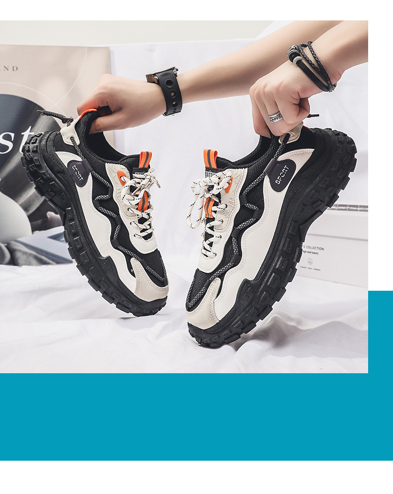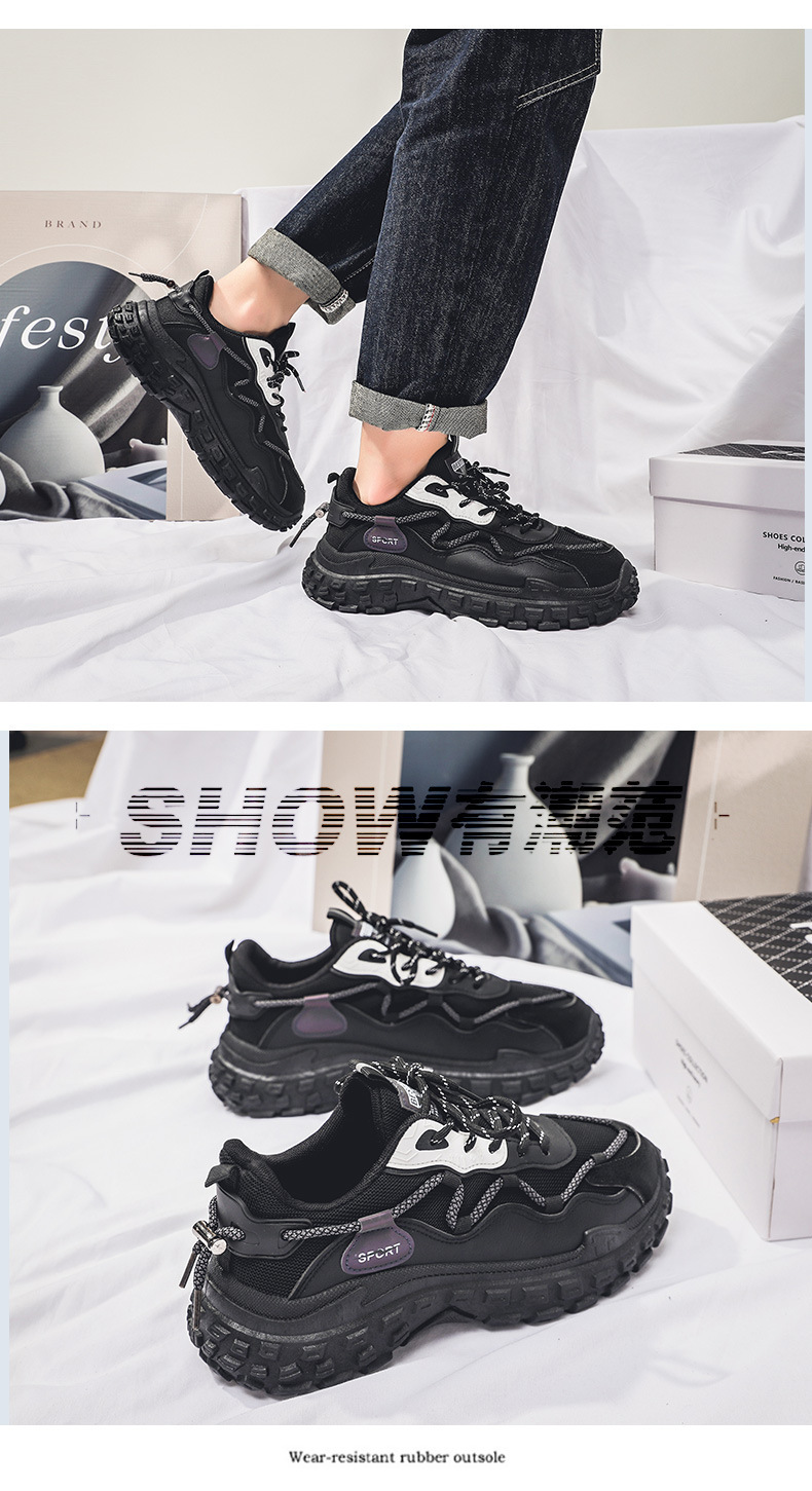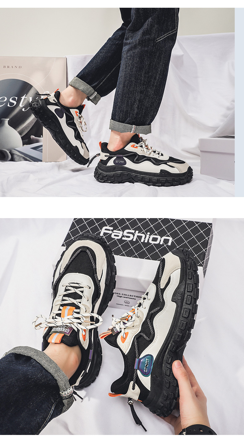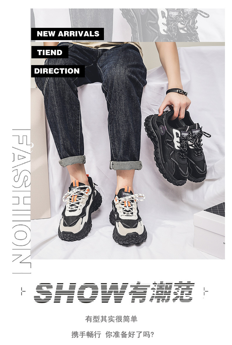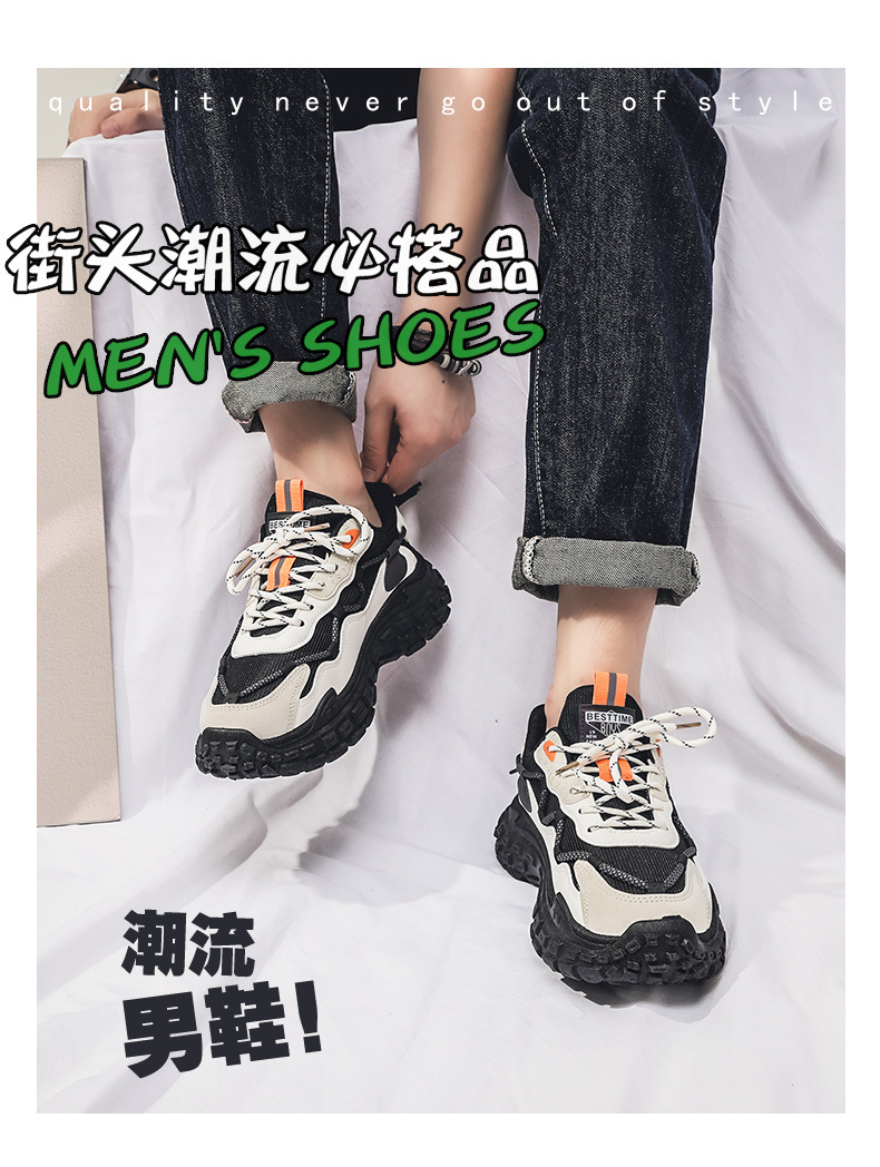인터넷 유명 인사 인기있는 남성 신발 여름 통기성 메쉬 모든 경기 스포츠 레저 달리기 두꺼운 바닥 타이어 아빠 남자 트렌디 신발