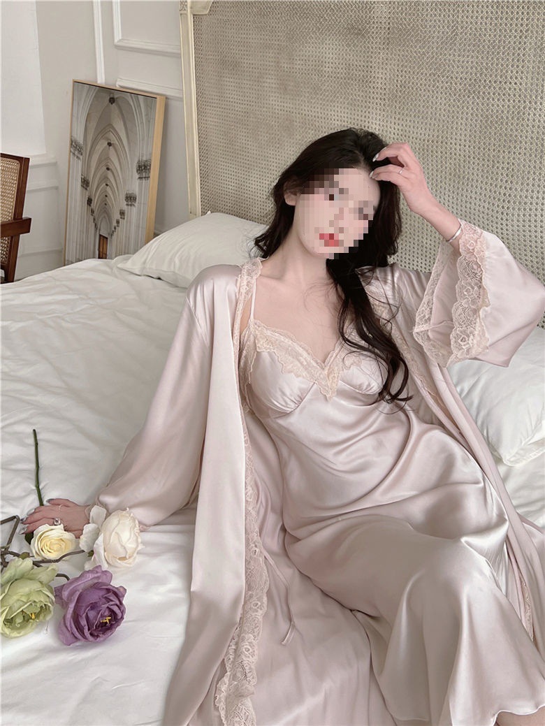 가슴 패드와 긴 나이트 가운 높은 감각 2023 새로운 스타일 나이트 가운 섹시한 순수한 욕망 슬링 나이트 가운 여성의 투피스 세트