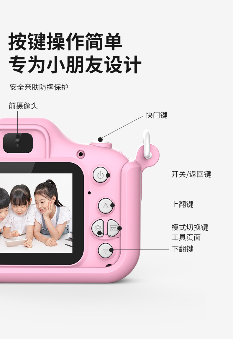 국경 X200 어린이 디지털 카메라 작은 SLR 전면 및 후면 HD 더블 카메라 만화 미니는 사진과 비디오를 찍을 수 있습니다.스토어 가기