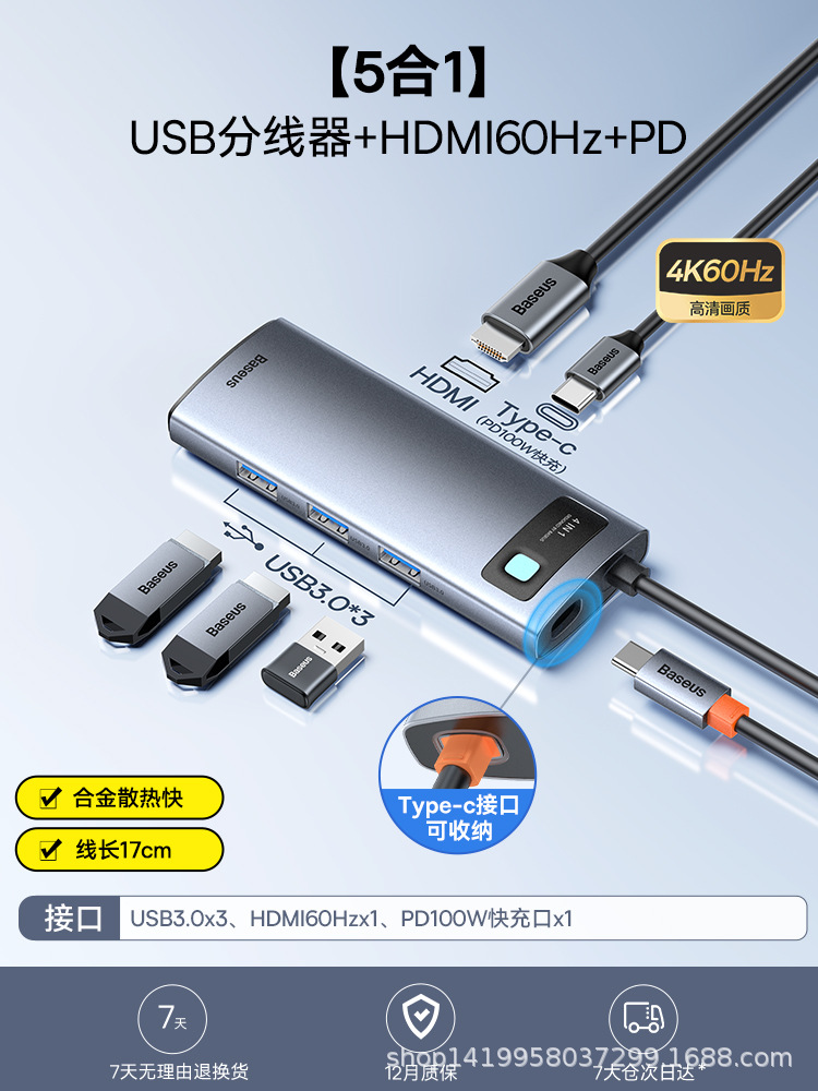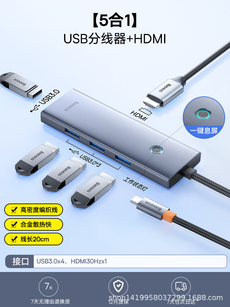 • 슈퍼 엔조이【5-in-1】(Type-C to HDMI4K@30Hz*1+USB 3.0*4)