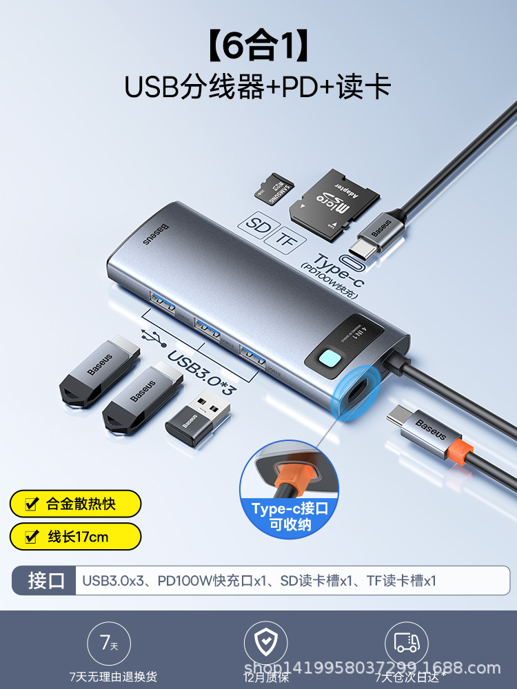 • 메탈 쉬머【6 in 1】(Type-C to USB3.0*3+PD*1+SD/TF*1)