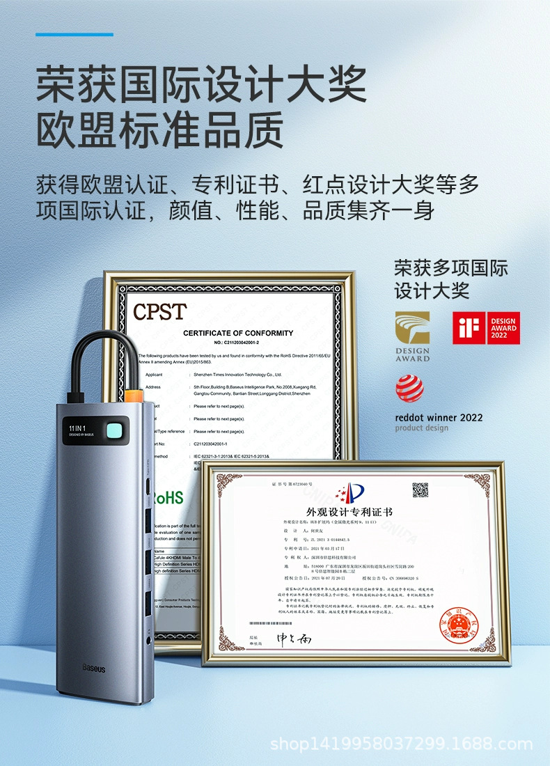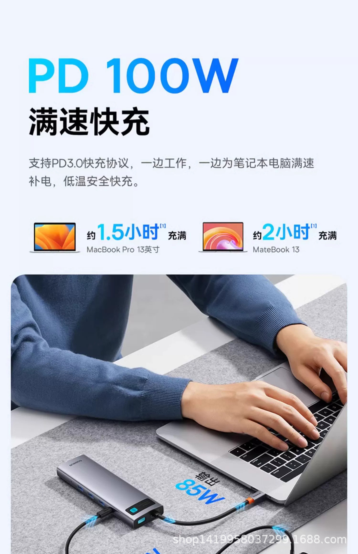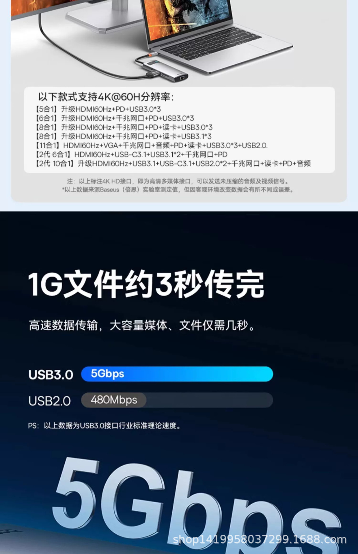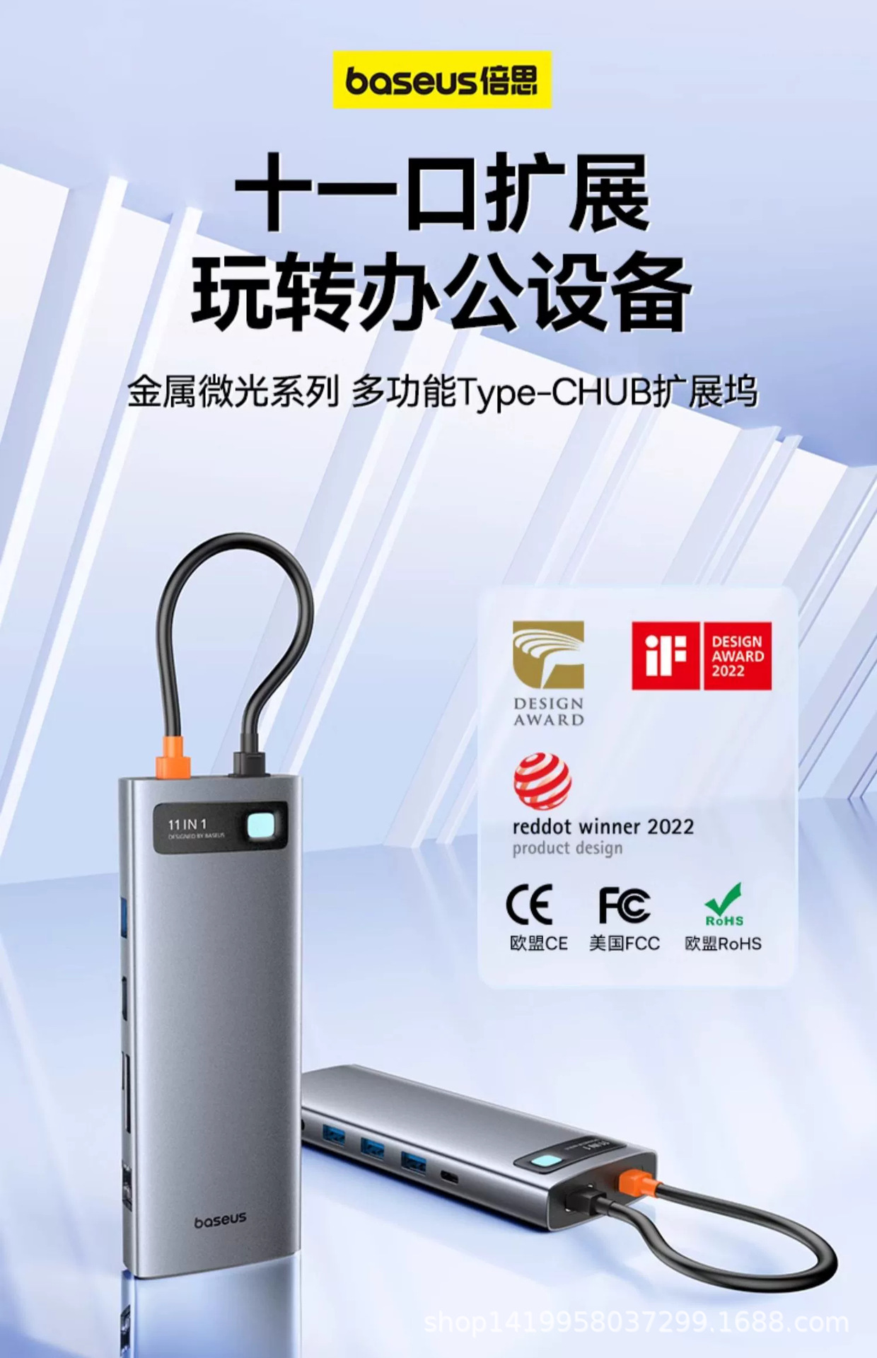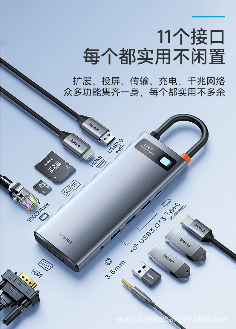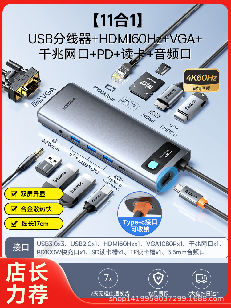 • [메탈 쉬머 11-in-1] USB3.0x3+업그레이드된 HDMI60Hz+VGA+USB2.0+기가비트 이더넷 포트+PD+읽기