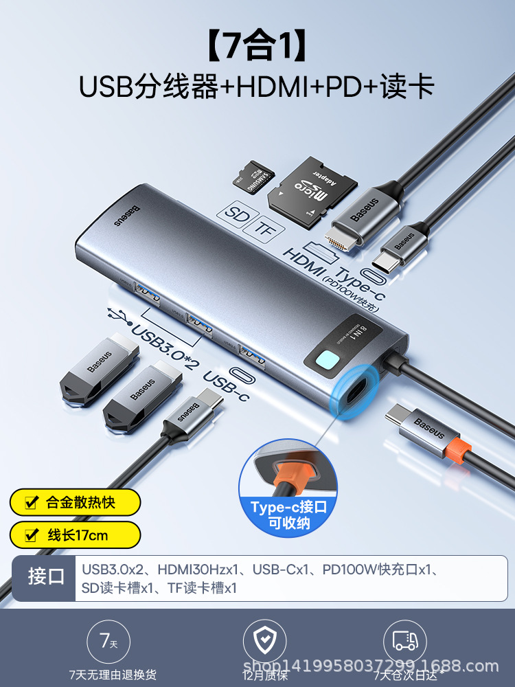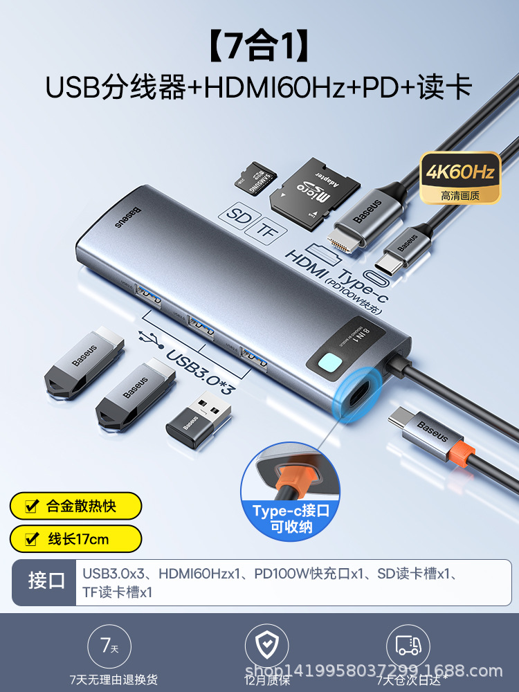• 메탈 쉬머 7-in-1 (HDMI4K@60Hz*1+USB3.0*3+PD*1+SD/TF*1)