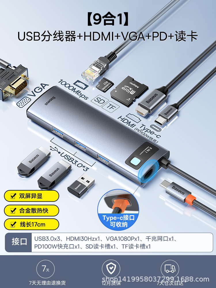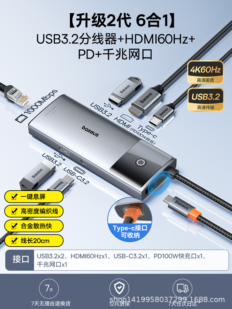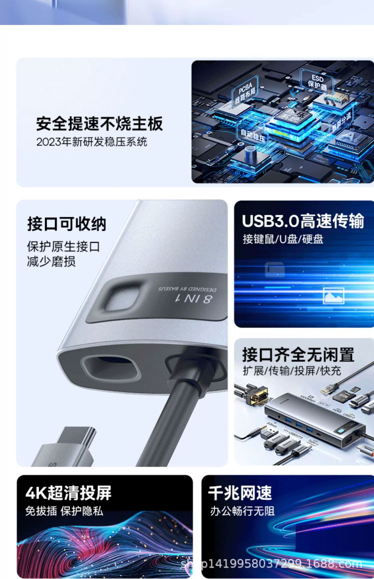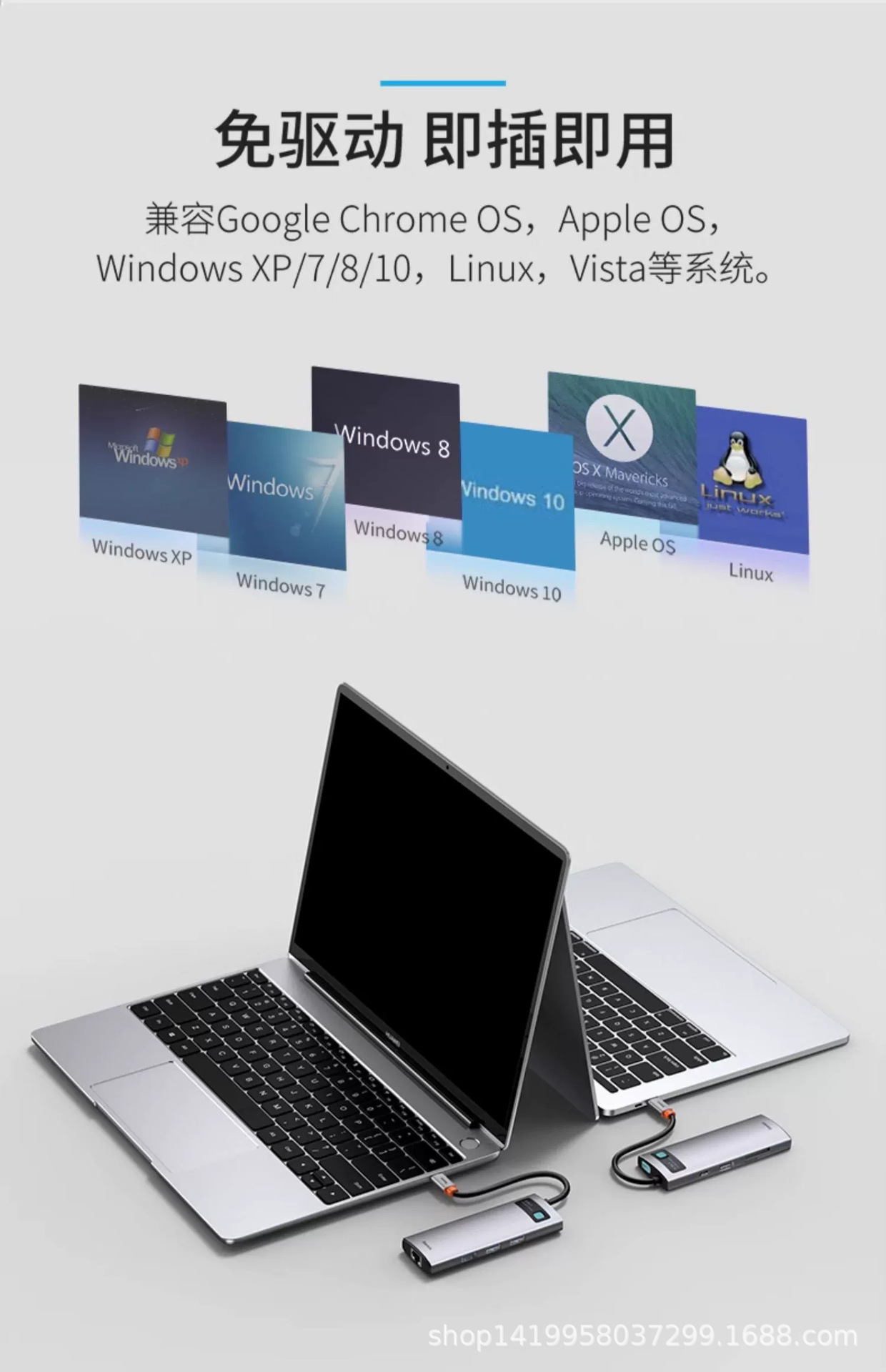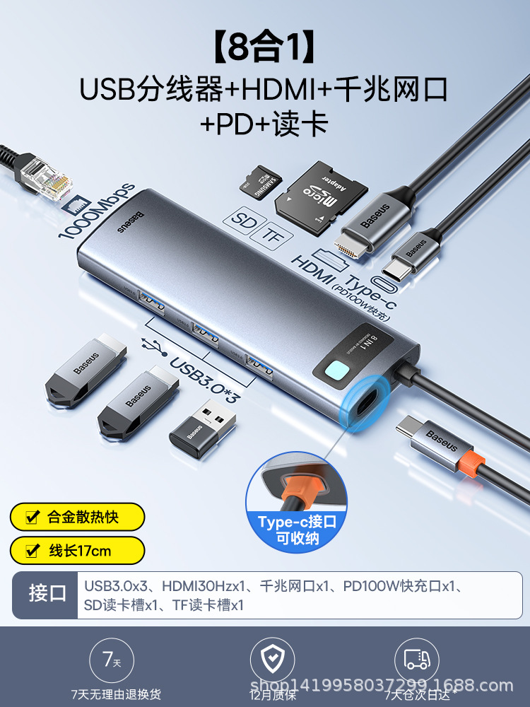 확장 도크 타입C HDMI 프로젝션 스크린 USB 분배기 어댑터 허브 인터페이스 네트워크 케이블 변환기스토어 가기