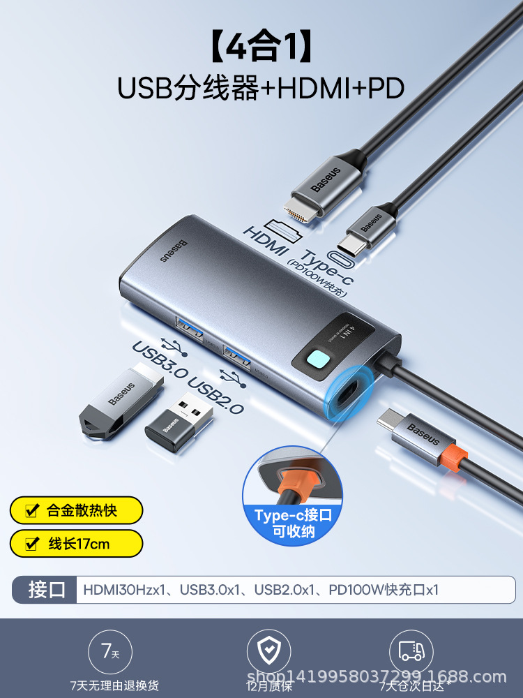 • 메탈 쉬머【4 in 1】(Type-C to HDMI*1+USB3.0*1+USB2.0*1+PD*1)