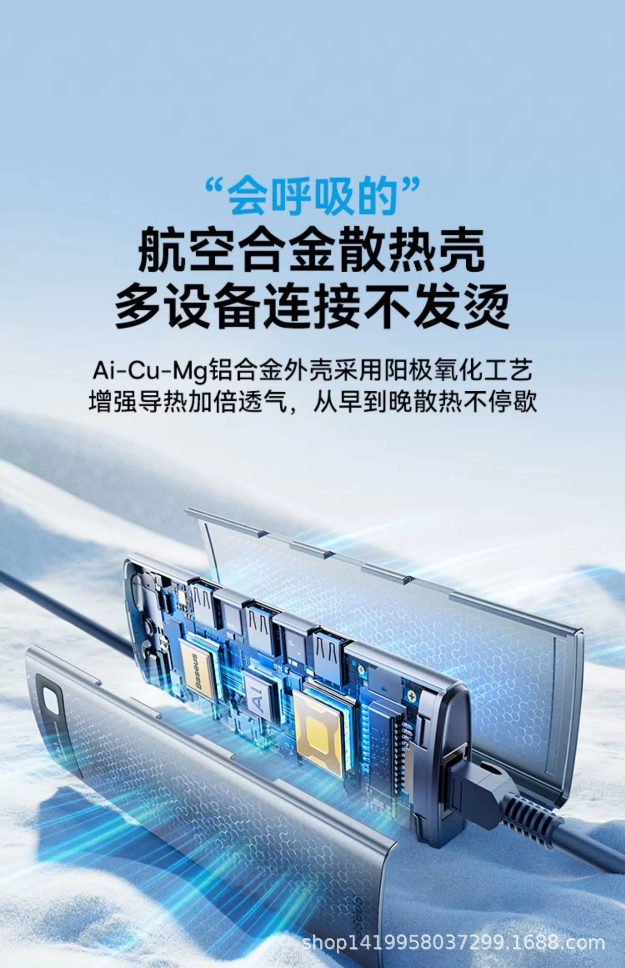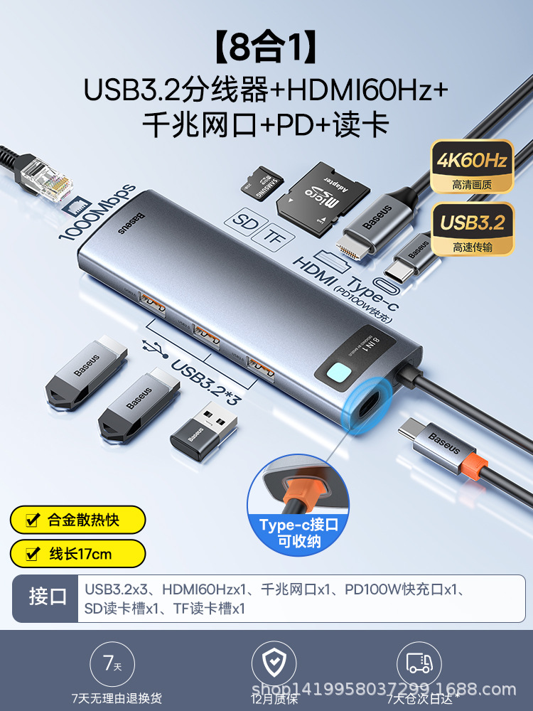 • 메탈 쉬머 [8-in-1] USB3.2x3+ 업그레이드된 HDMI60Hz+기가비트 이더넷 포트+PD+카드 판독.
